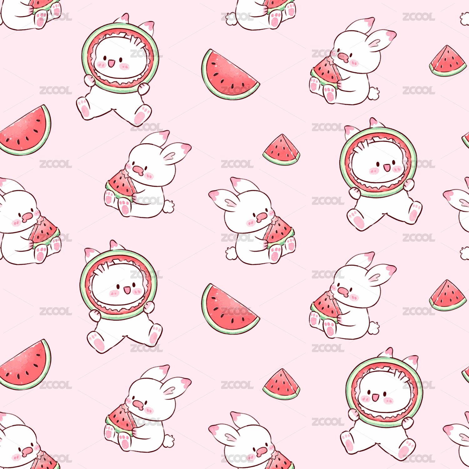 夏天吃西瓜的兔兔花型圖案3
