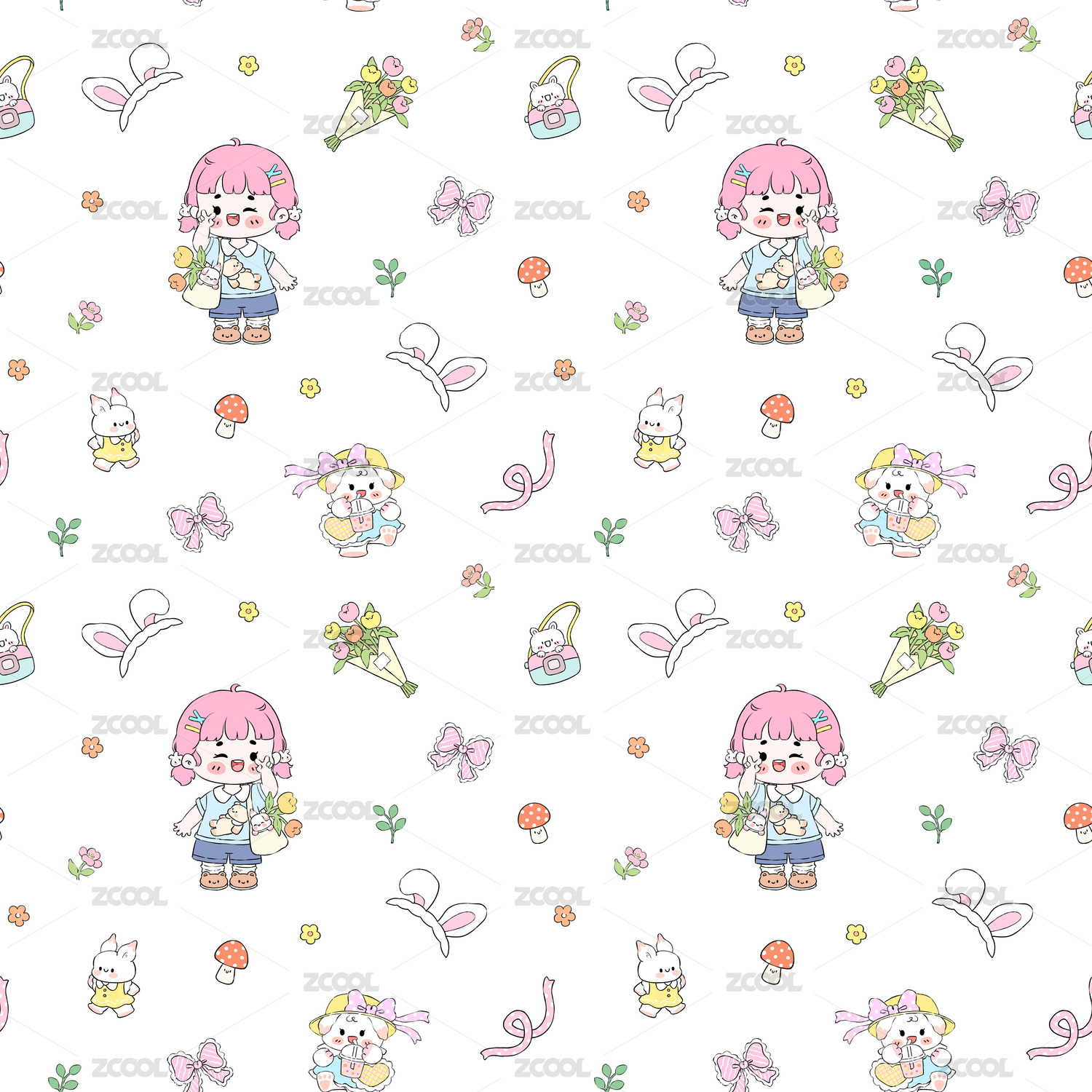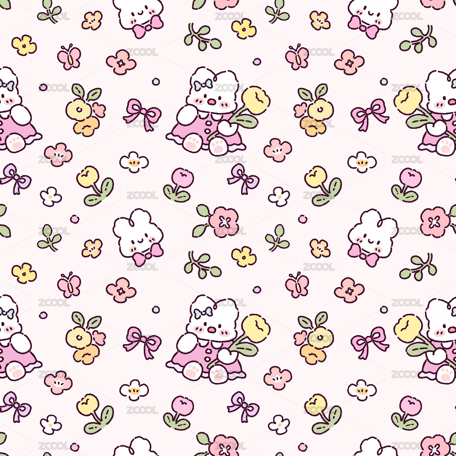 兔兔碎花花型四方連續(xù)圖案