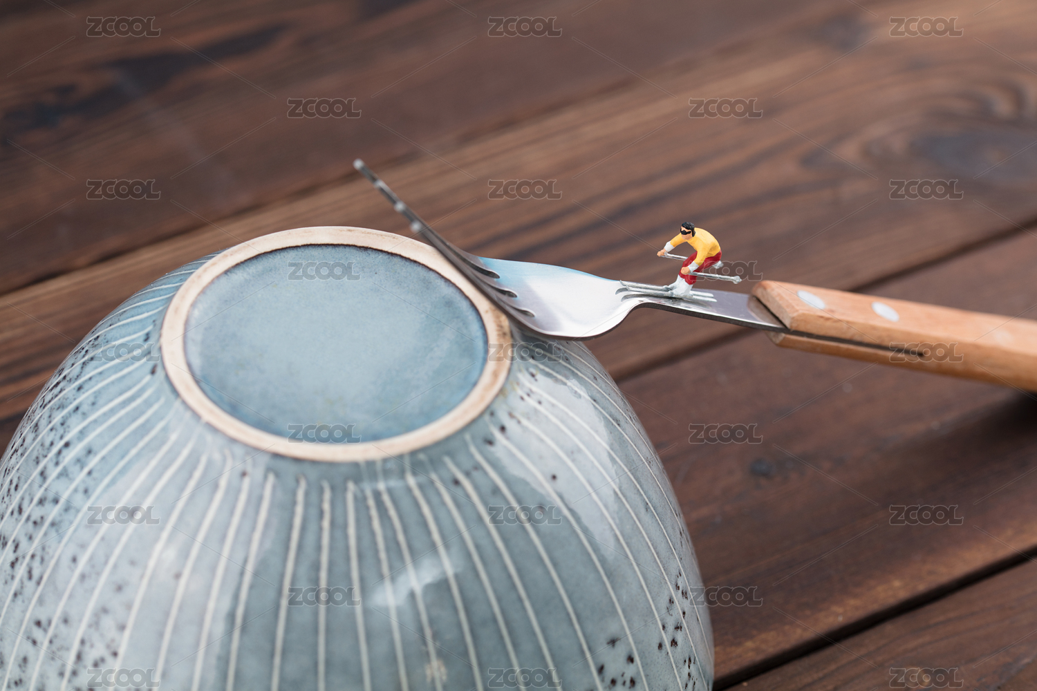 微縮創(chuàng)意餐叉上滑雪而下