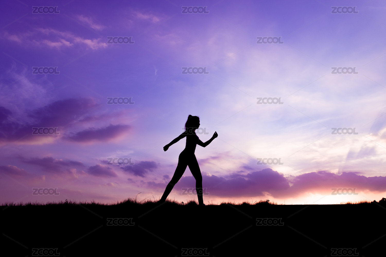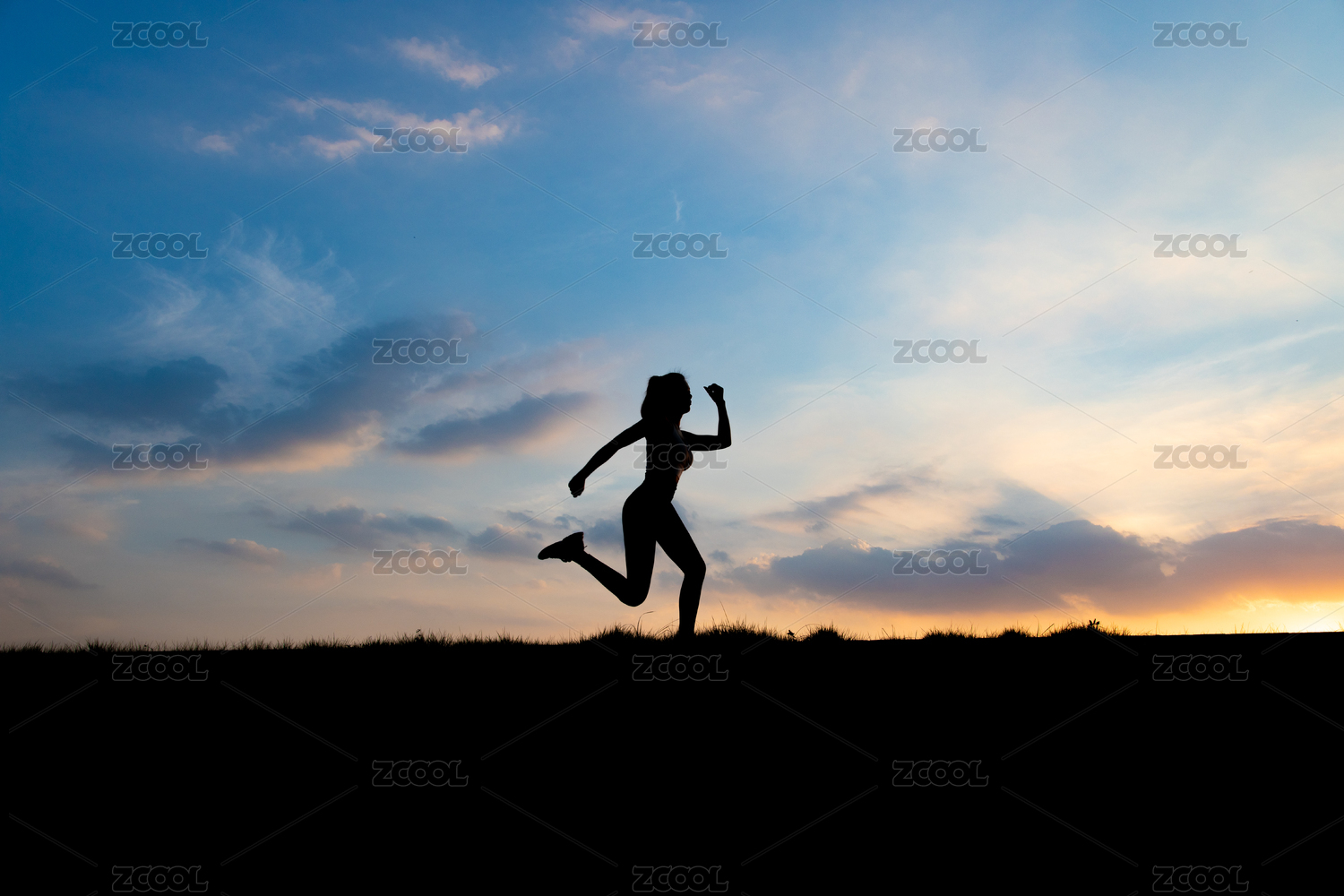 朝霞下跑步健身的女生剪影
