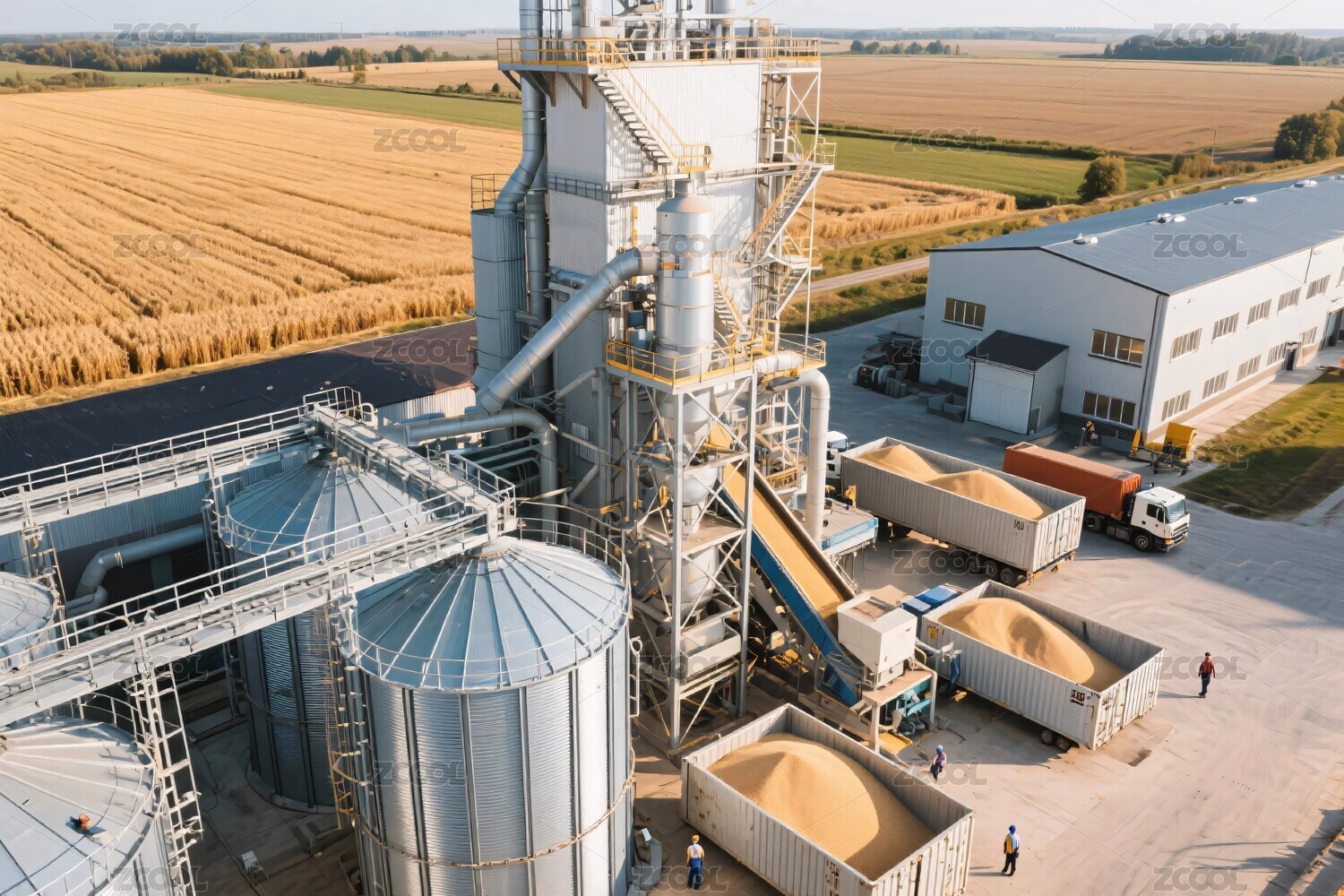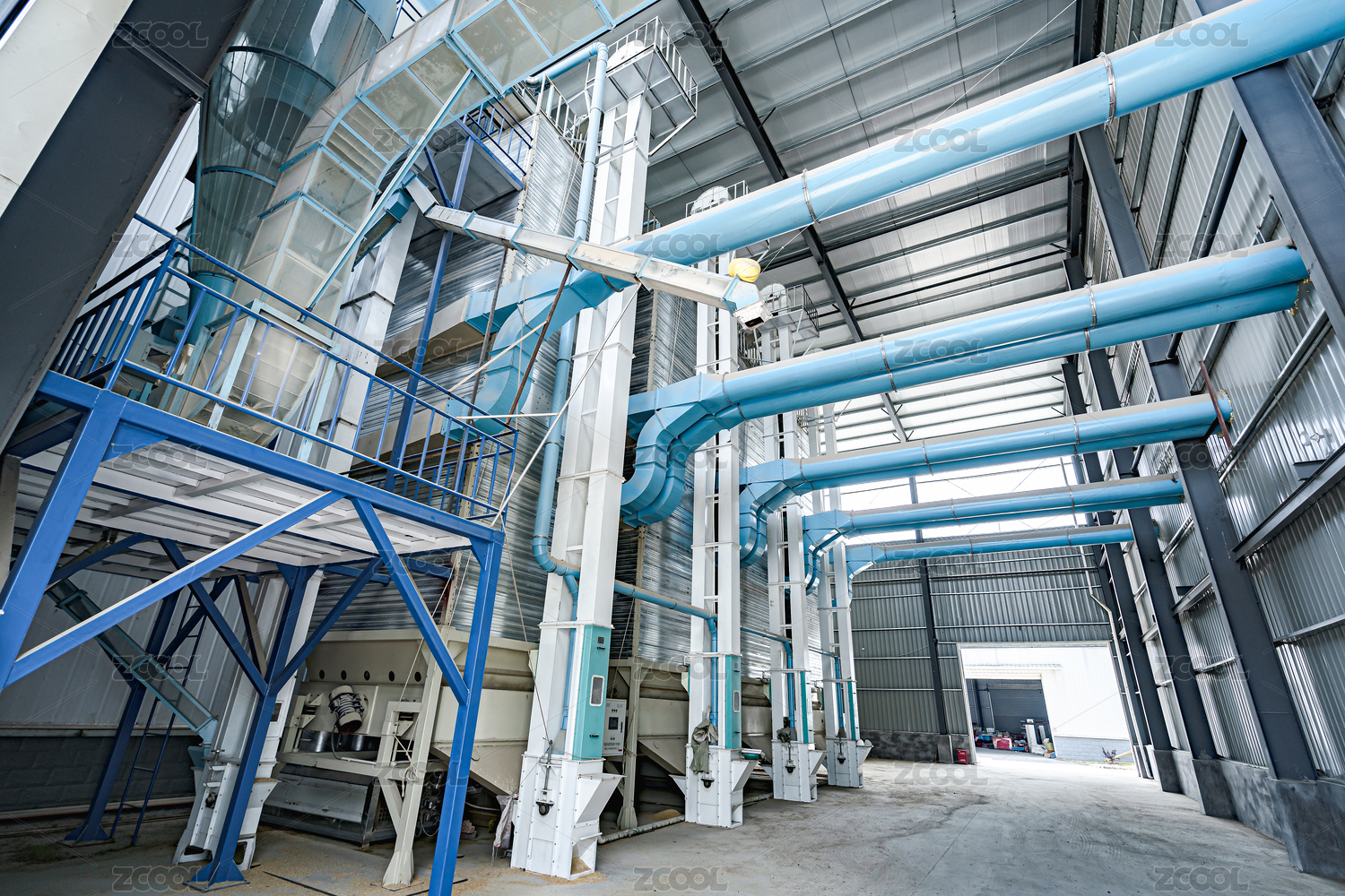 空曠的糧食加工企業(yè)車間內(nèi)部結(jié)構(gòu)及設(shè)備