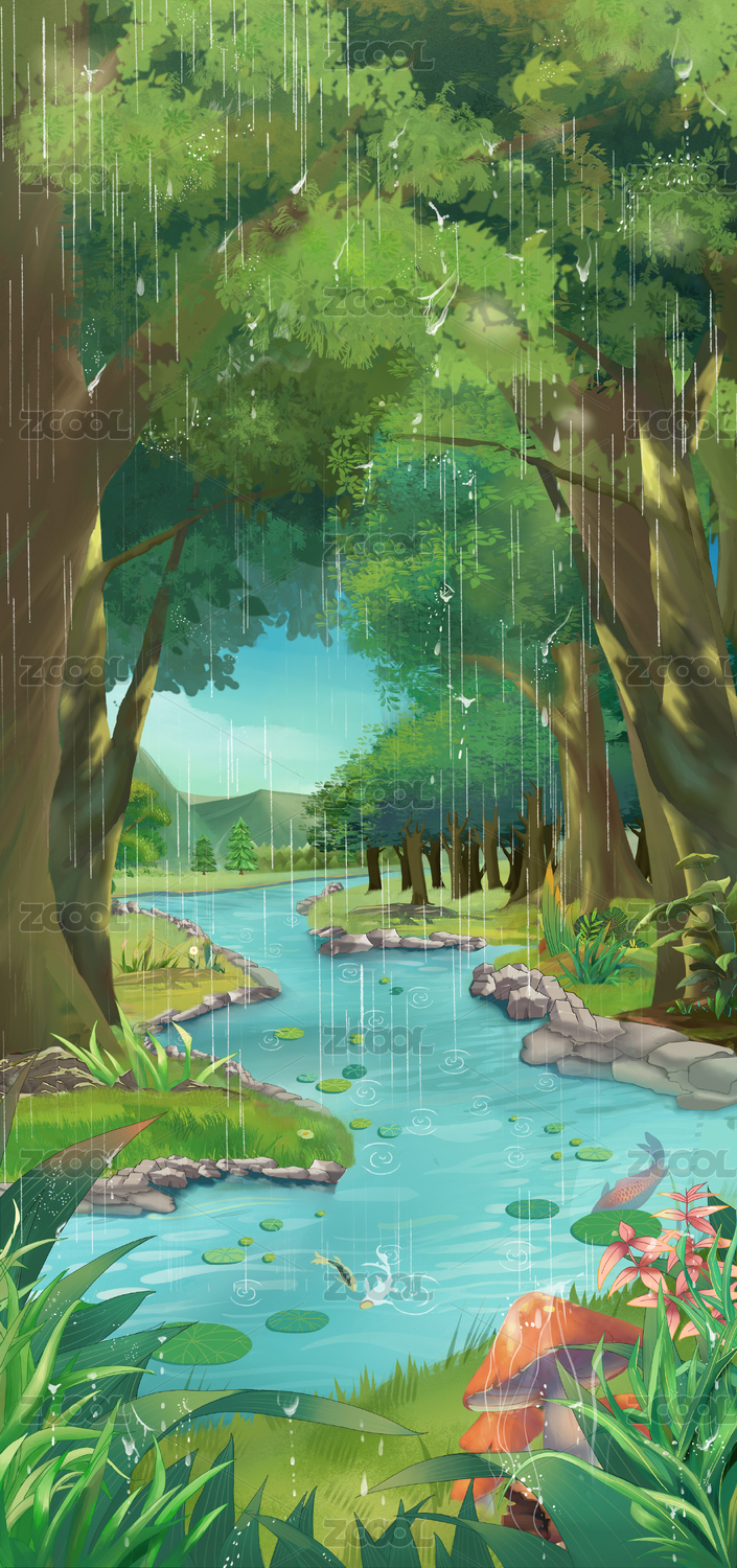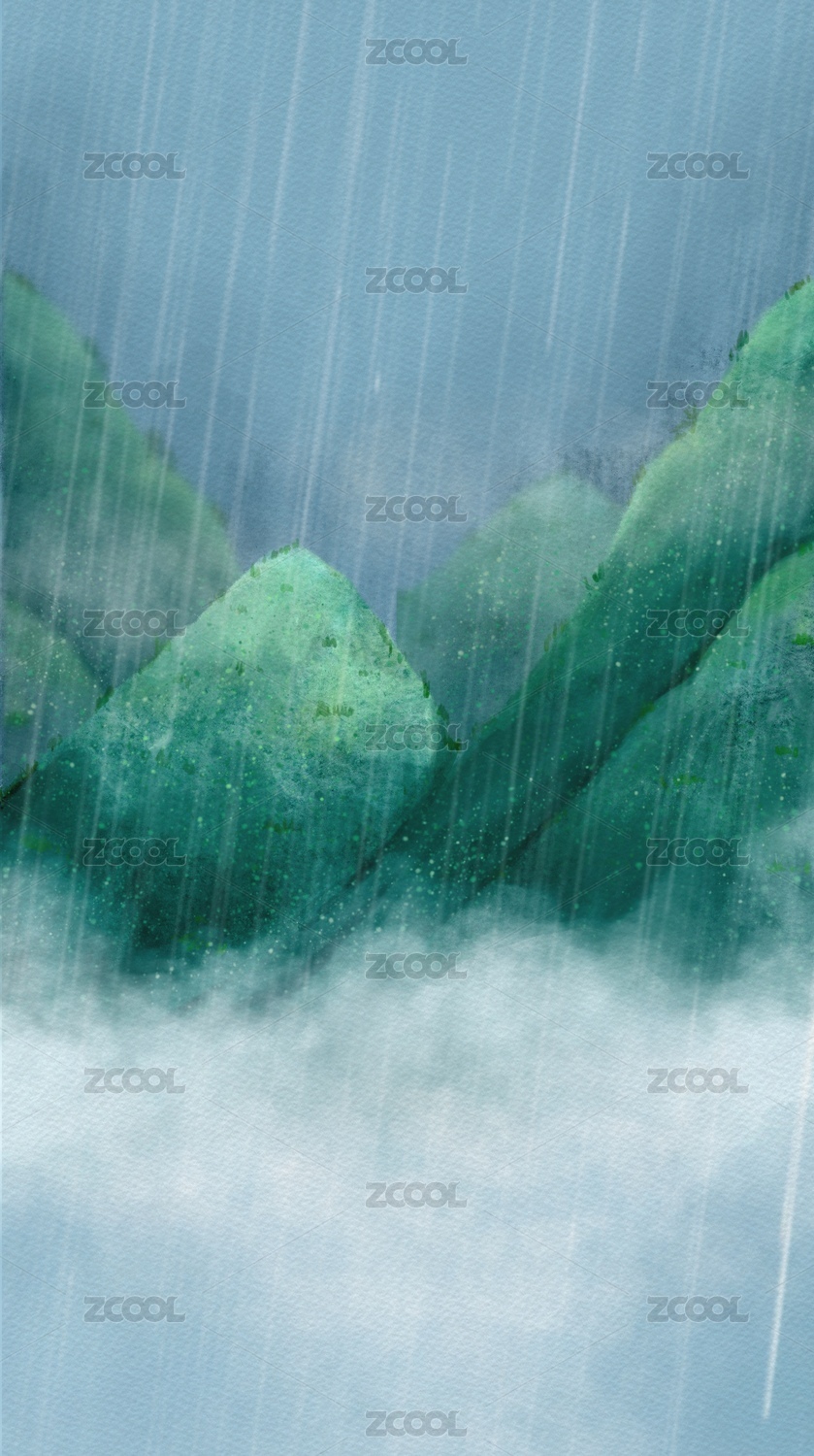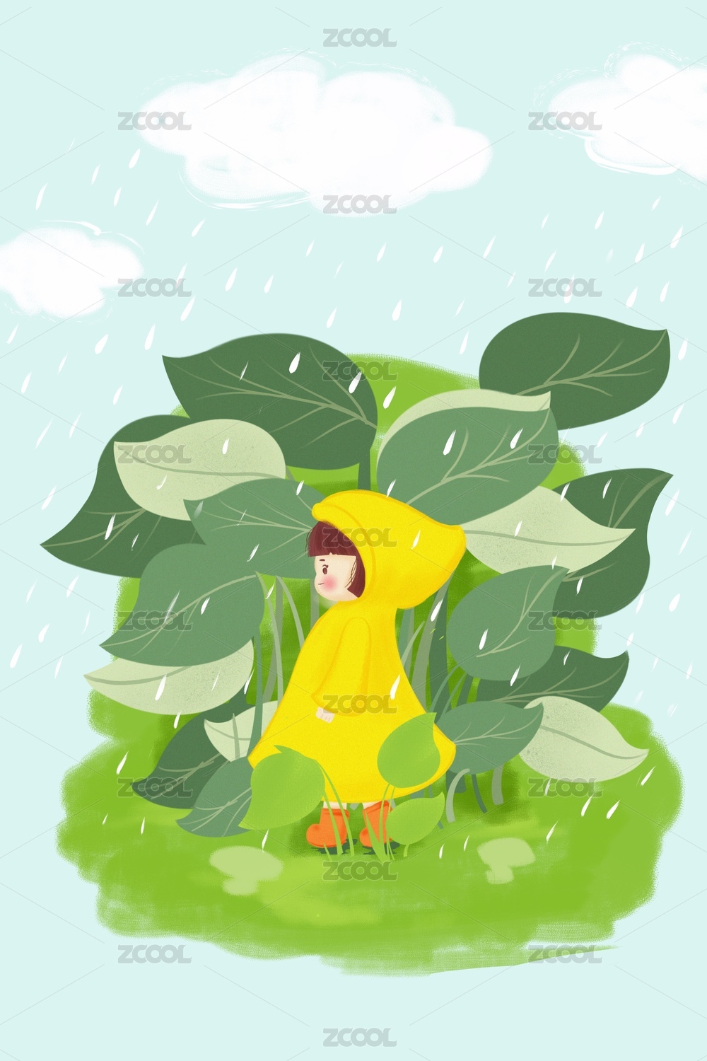 雨水節(jié)氣插畫綠色植物下雨天氣活動(dòng)海報(bào)背景