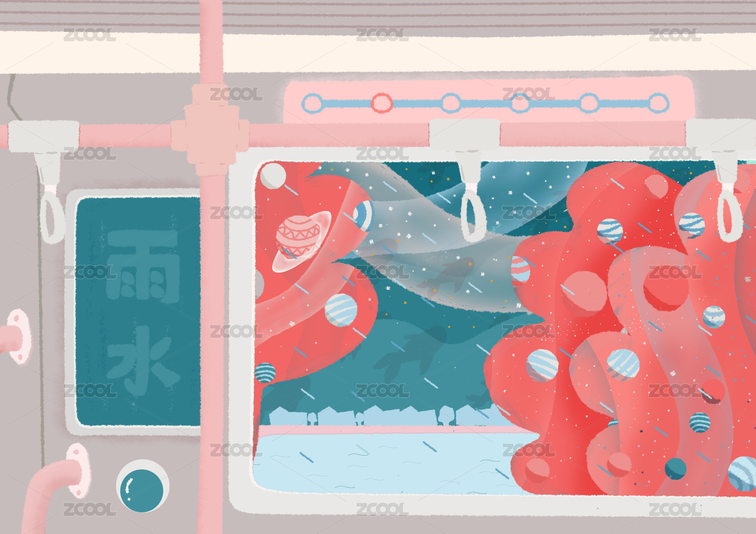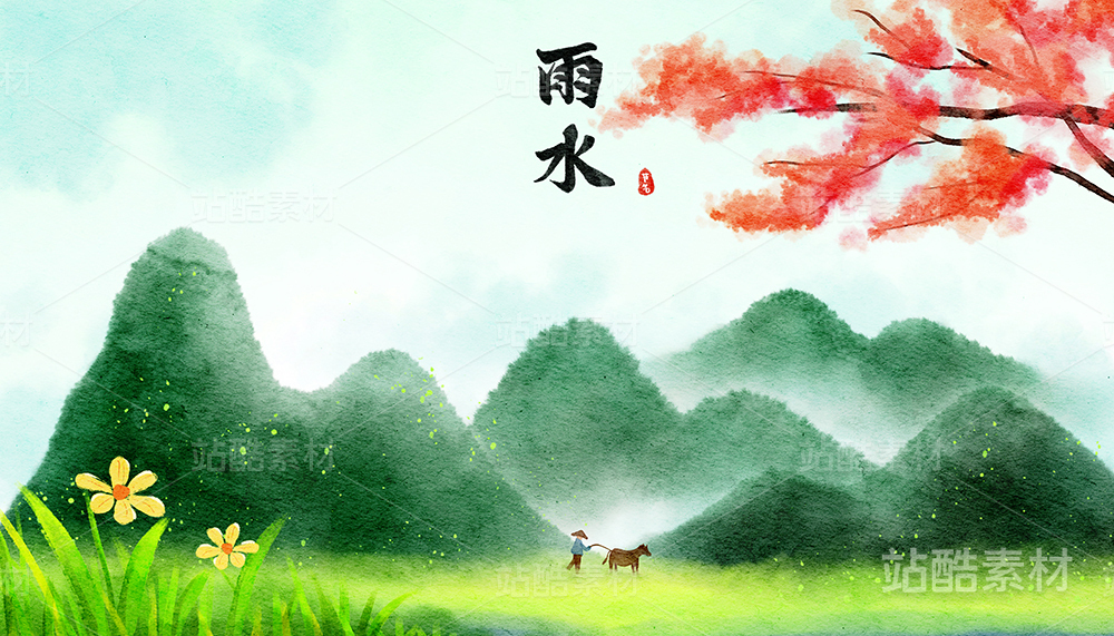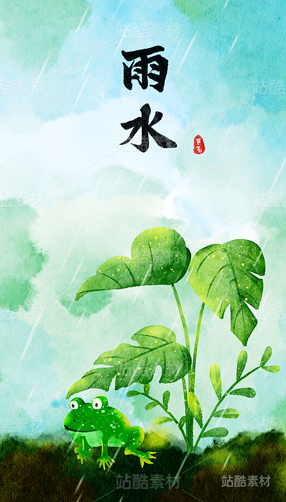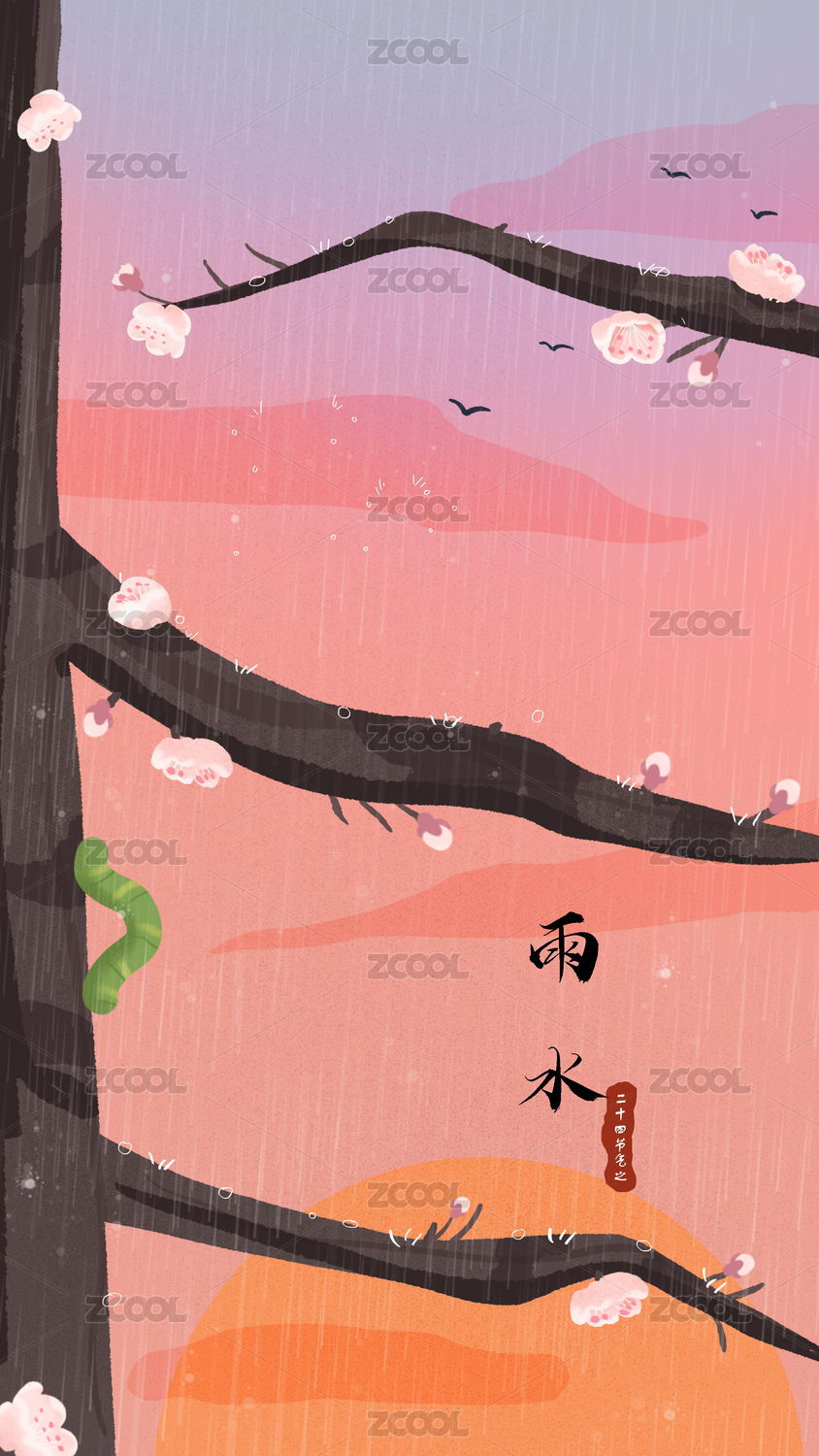 雨水節(jié)氣插畫綠色植物下雨天氣活動(dòng)海報(bào)背景