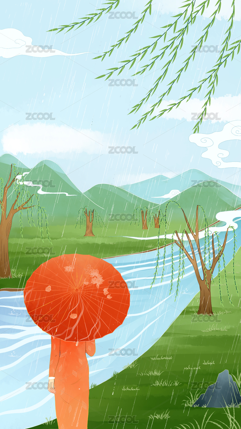 中國風(fēng)降雨女神雨水節(jié)氣插畫