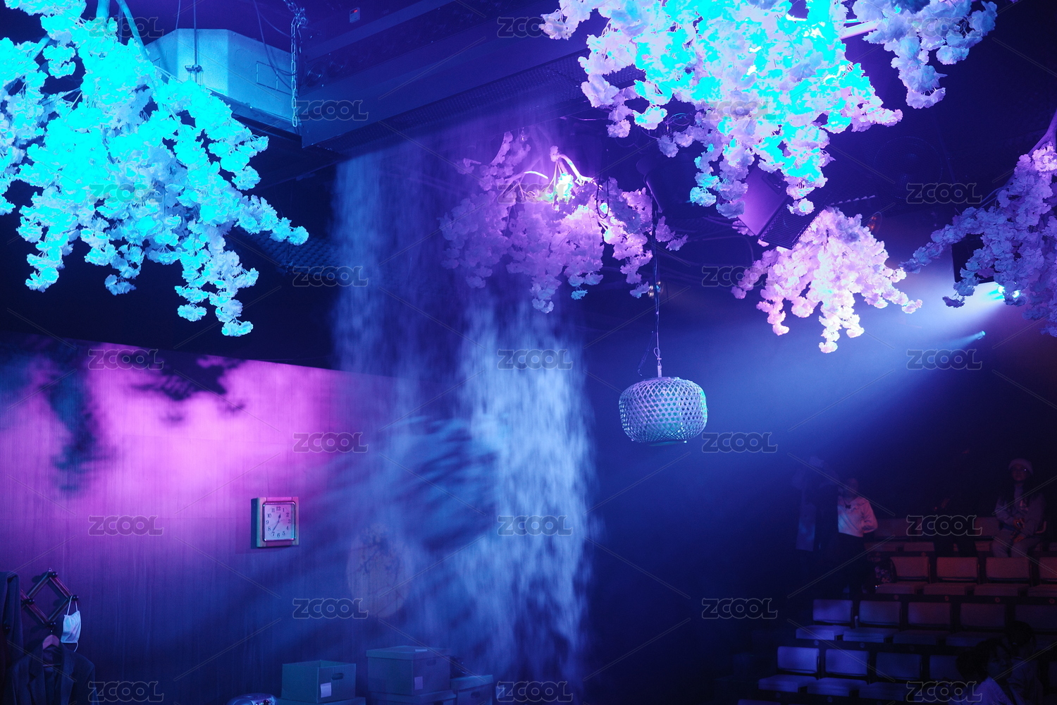 一座劇院放映廳的座位和射燈氛圍特寫