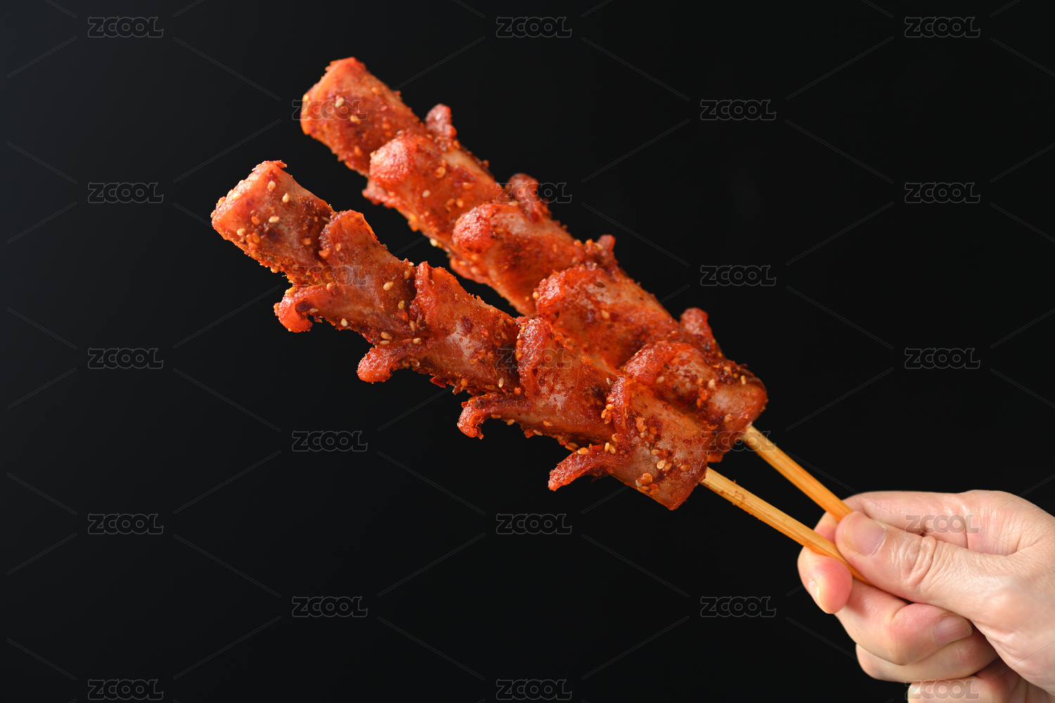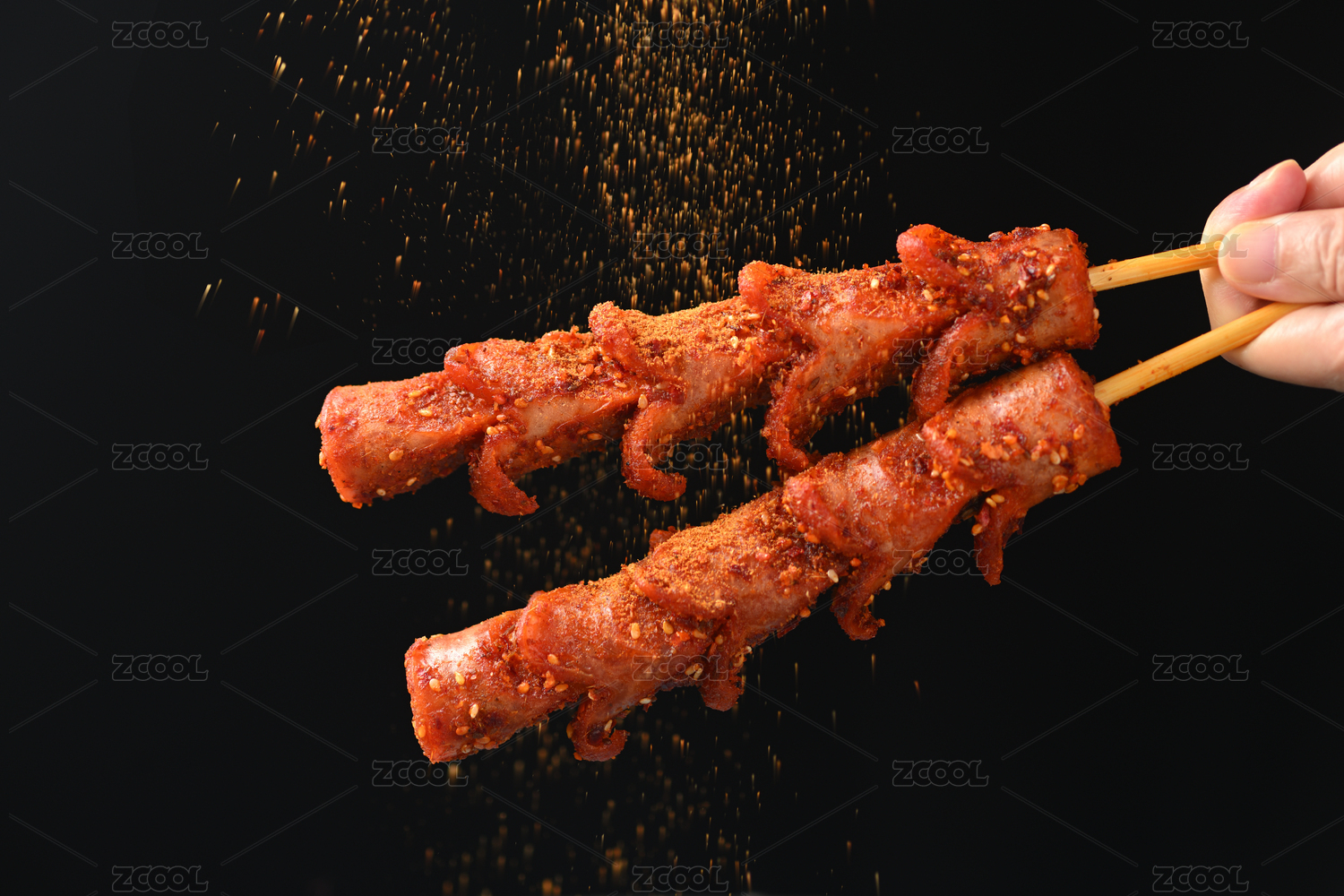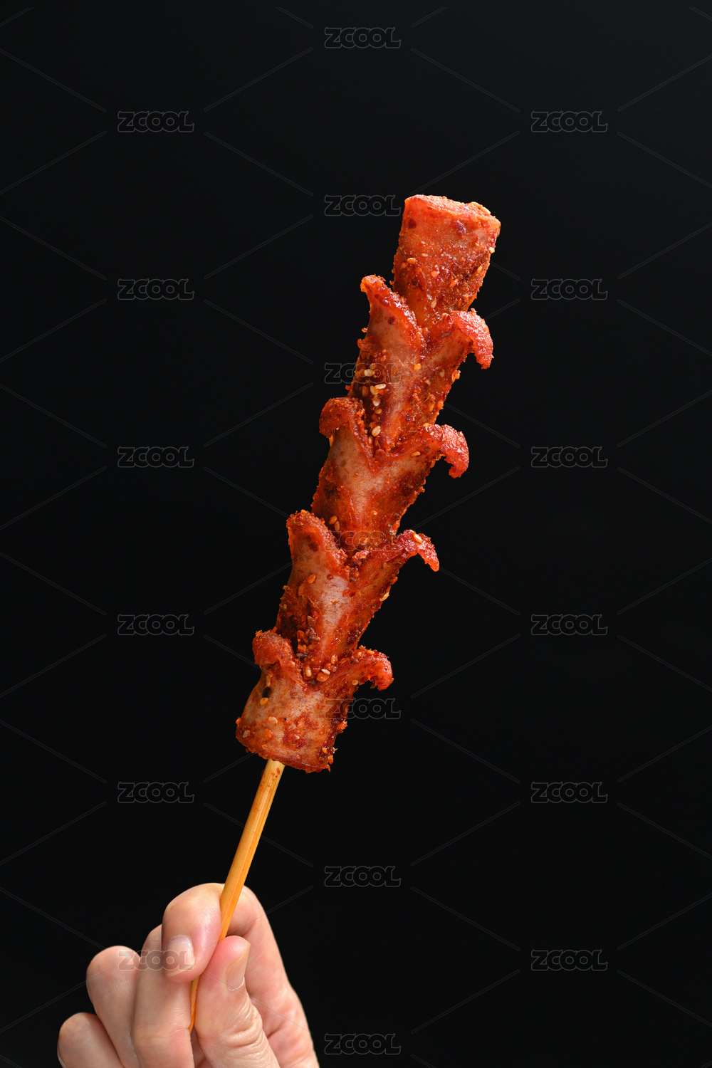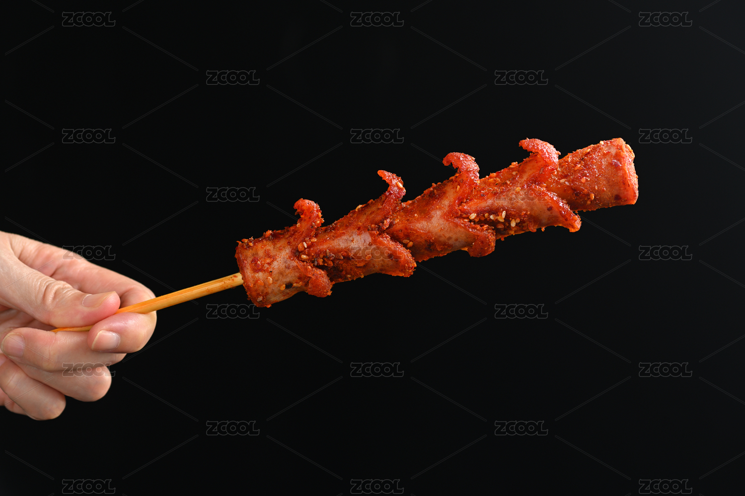 長沙美食街頭小吃炸香腸特寫