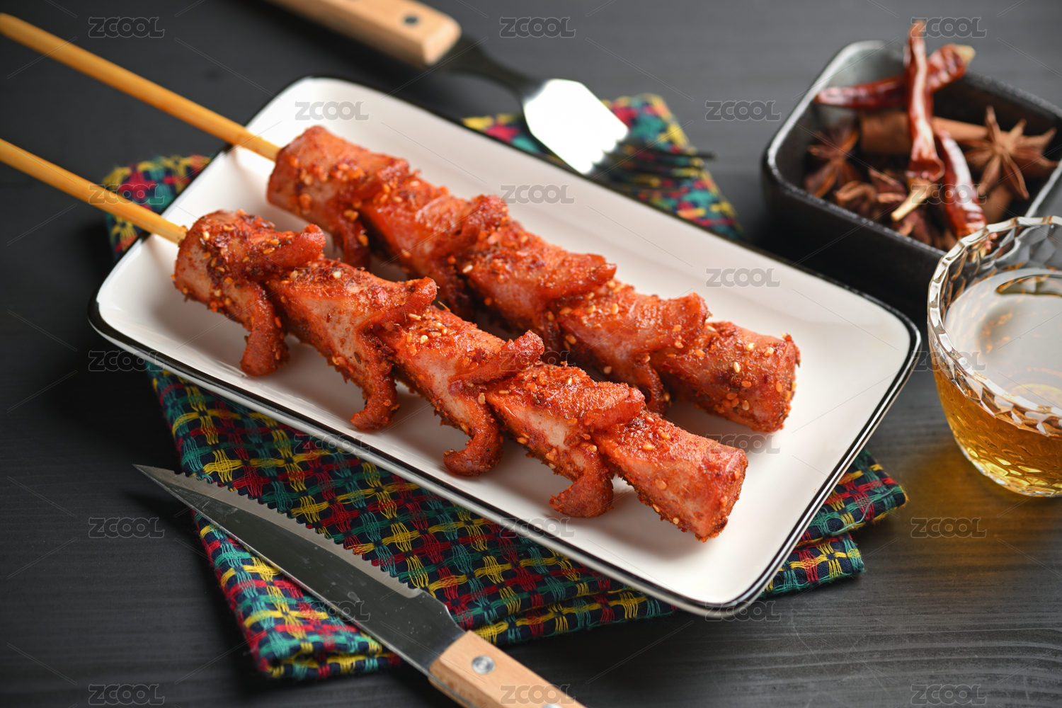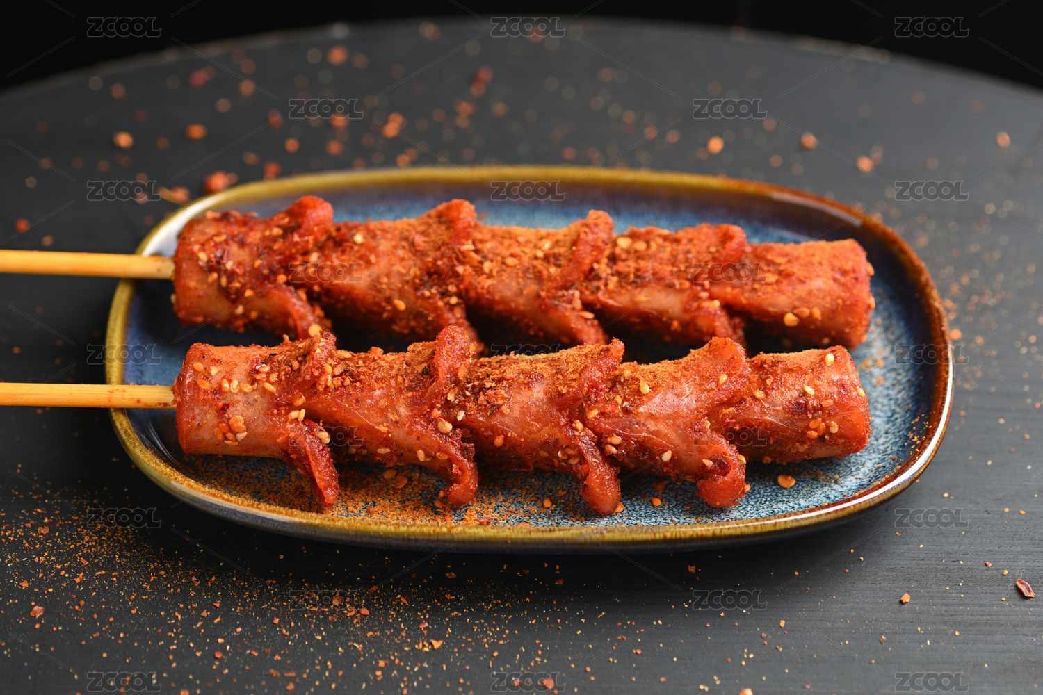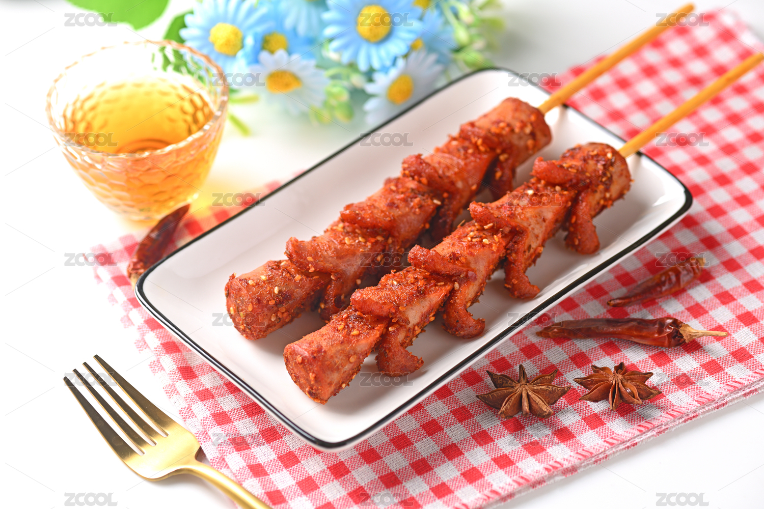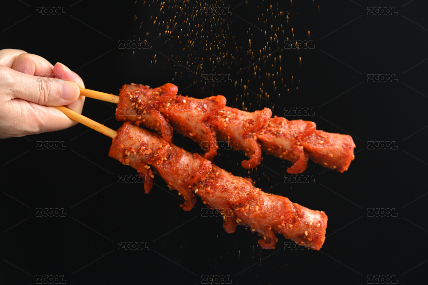 長沙美食街頭小吃炸香腸特寫