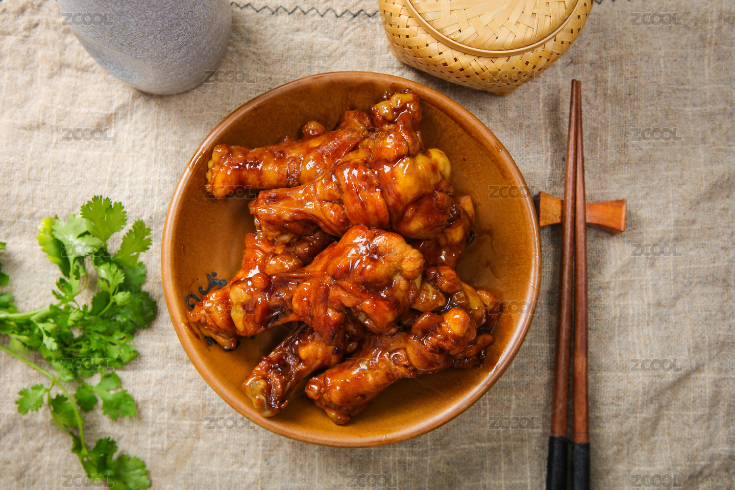 一盤紅燒雞腿特寫木桌面背景