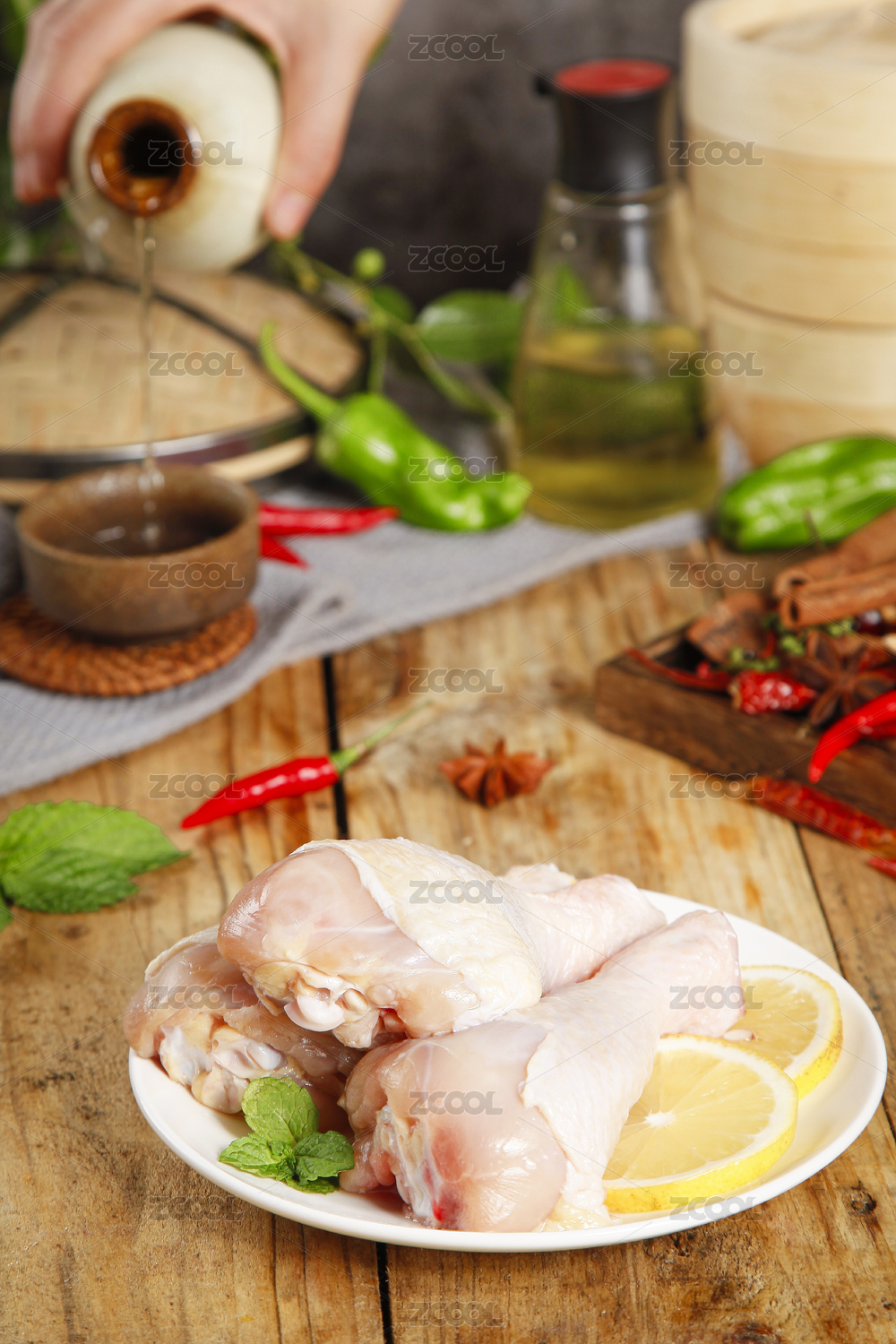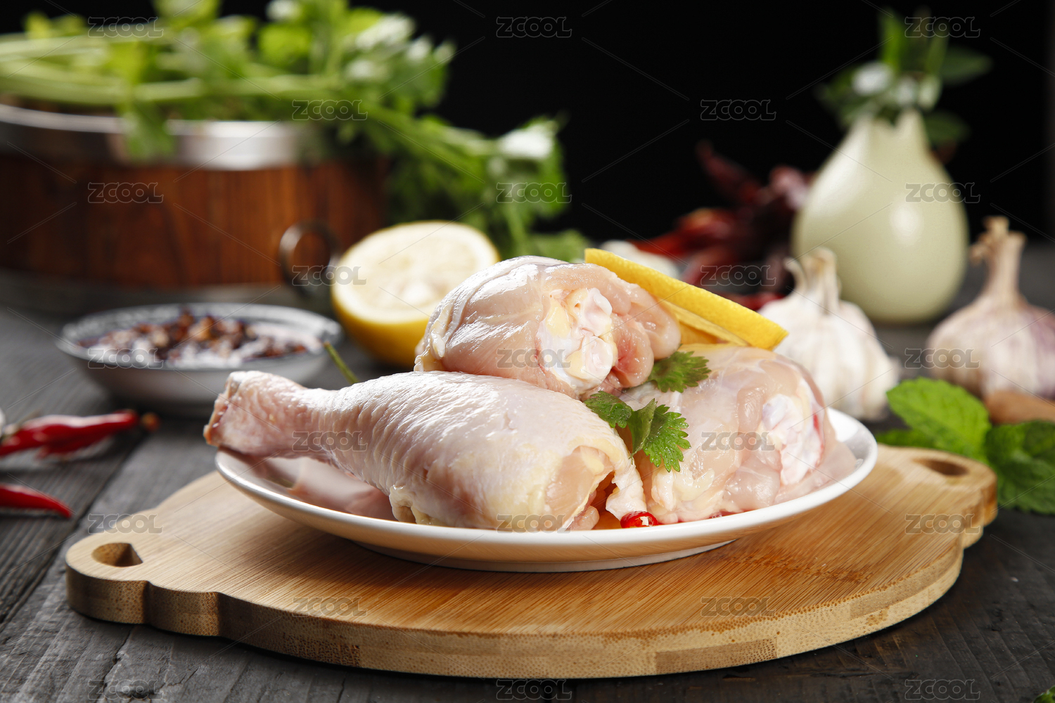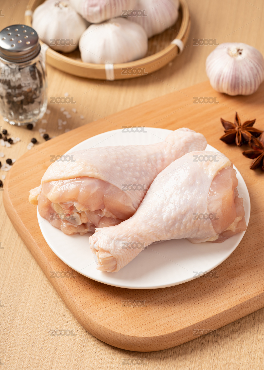 桌子上新鮮的雞琵琶腿