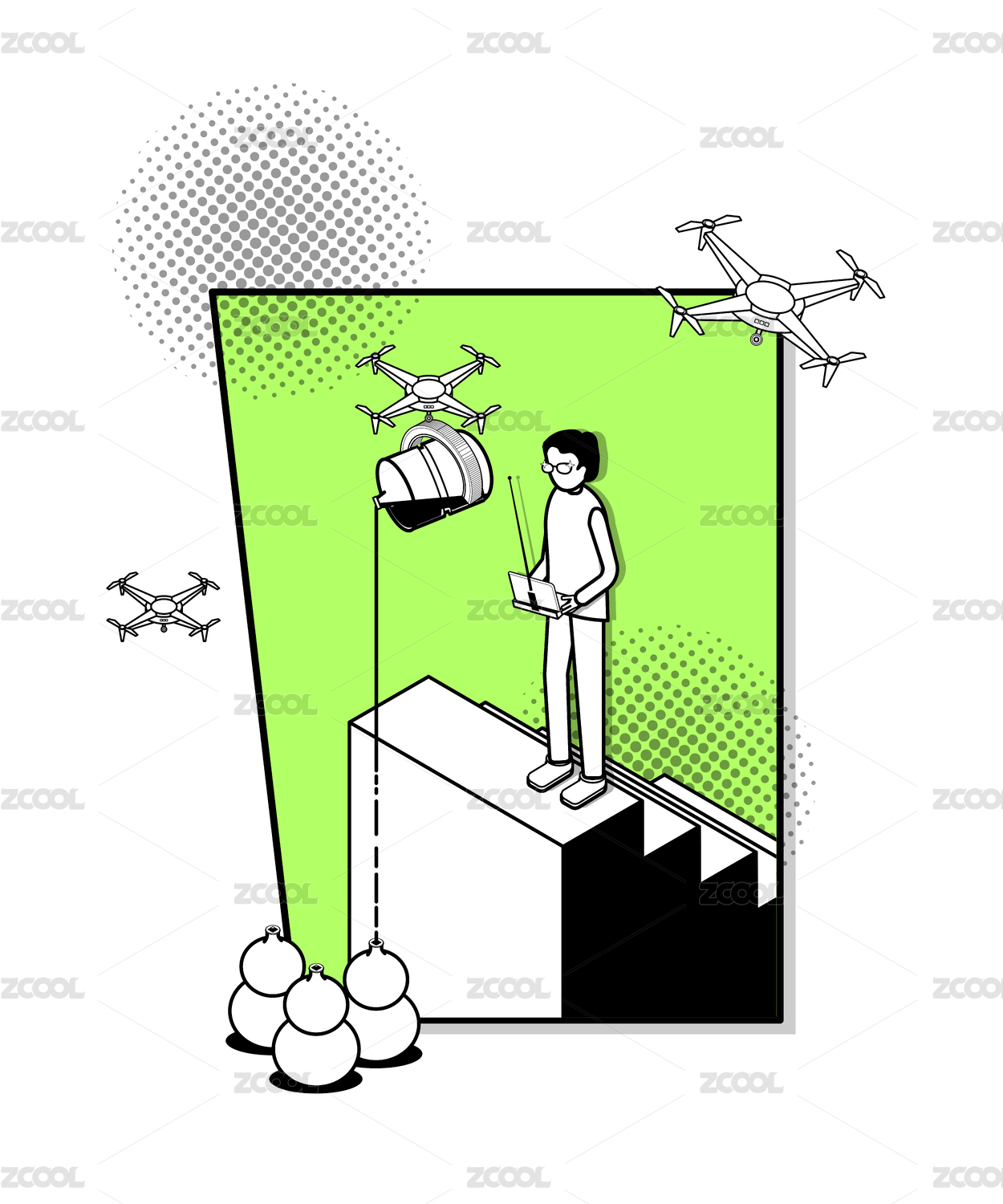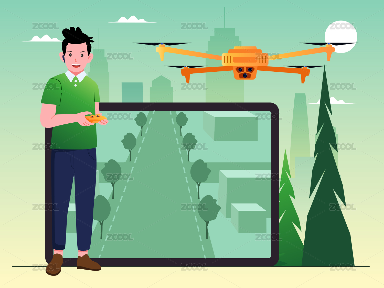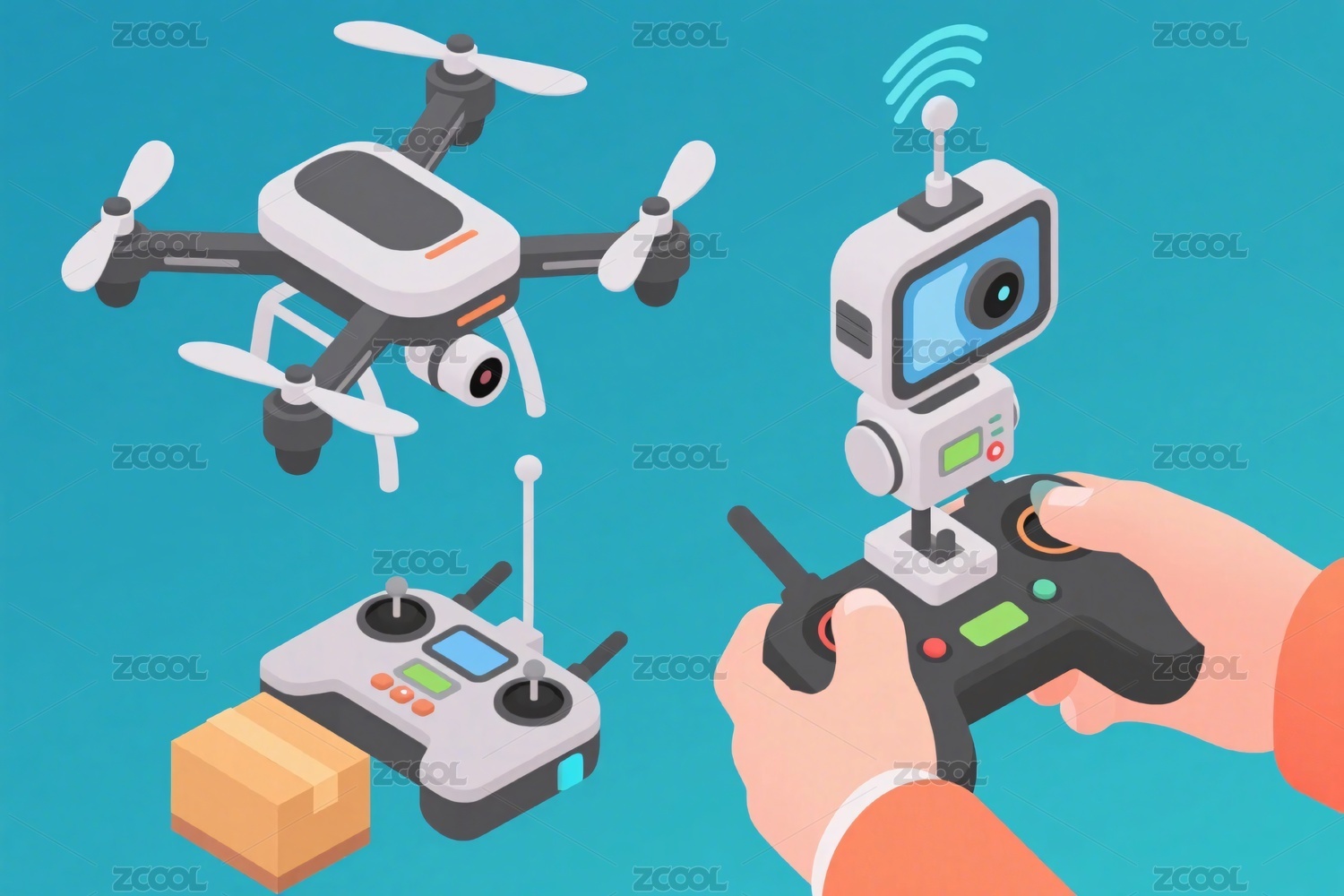科技感插畫手拿移動(dòng)終端操作無(wú)人駕駛無(wú)人機(jī)