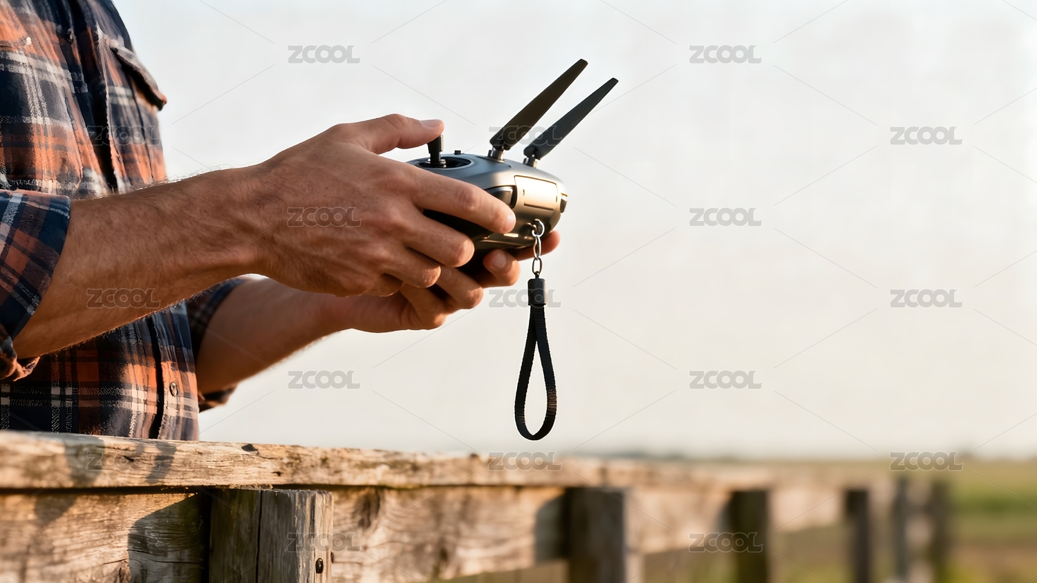 男子手持遙控器操作無(wú)人機(jī)