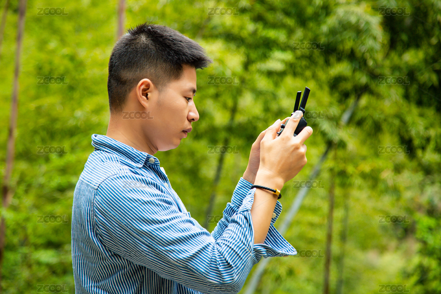 一個(gè)男生在專注的操控著無(wú)人機(jī)遙控器