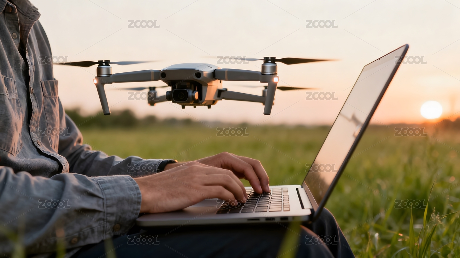 無(wú)人機(jī)操作與夕陽(yáng)田野