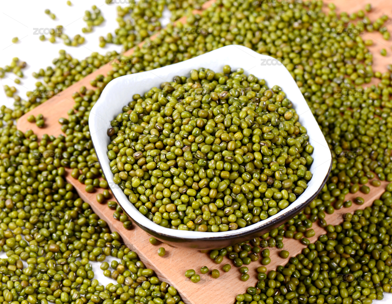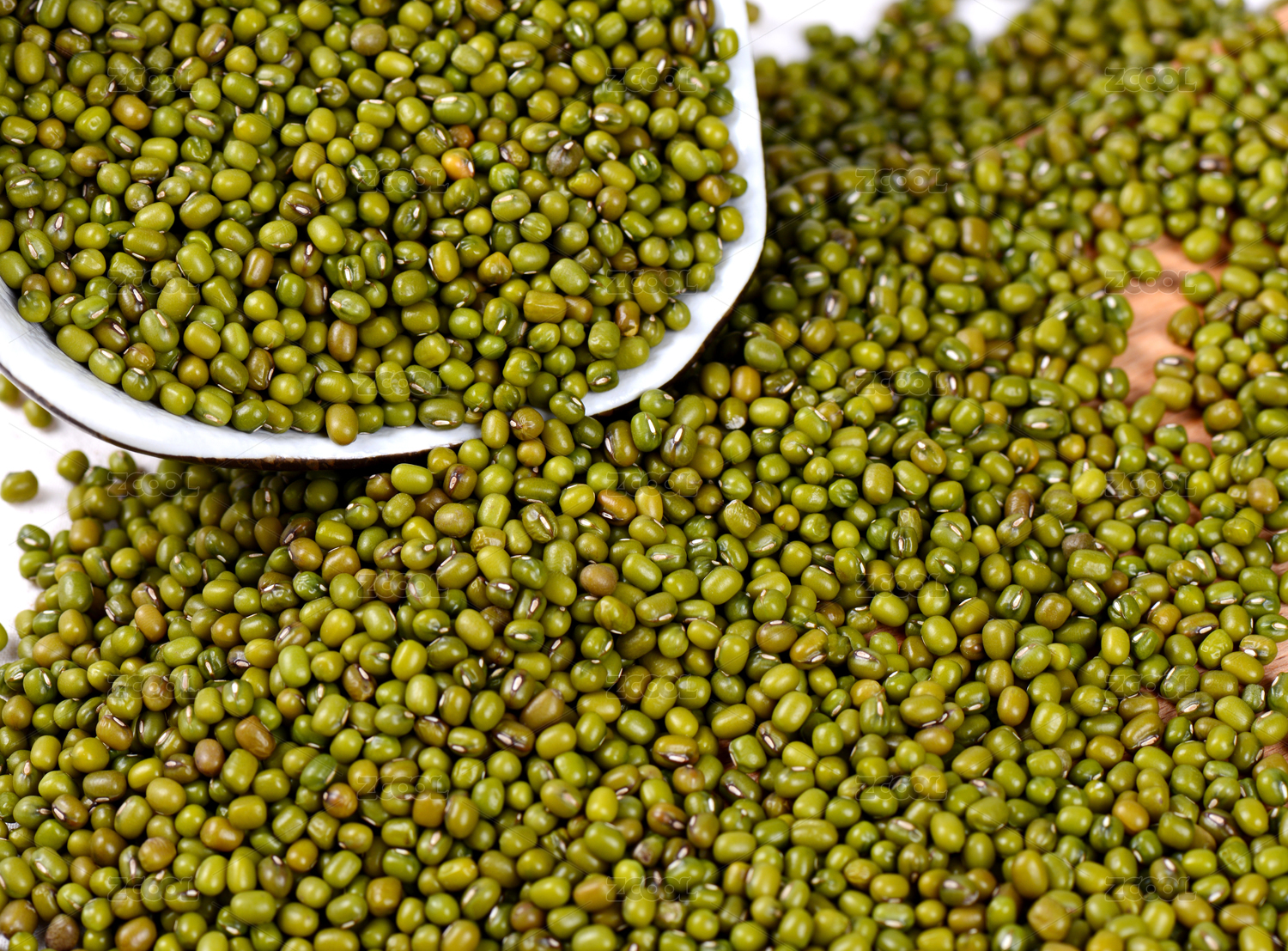 綠色調(diào)中白色瓷盤里的營養(yǎng)谷物有機綠豆