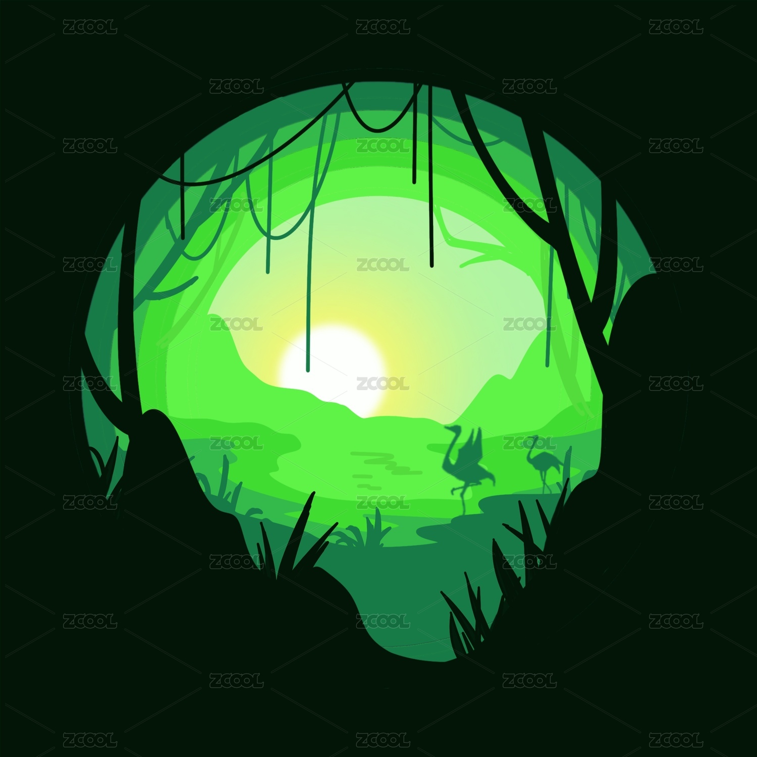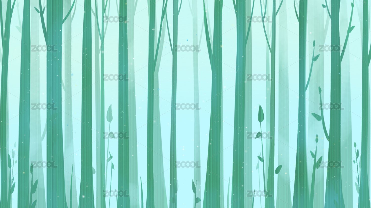 綠色調(diào)森林,唯美卡通自然風(fēng)景插畫背景