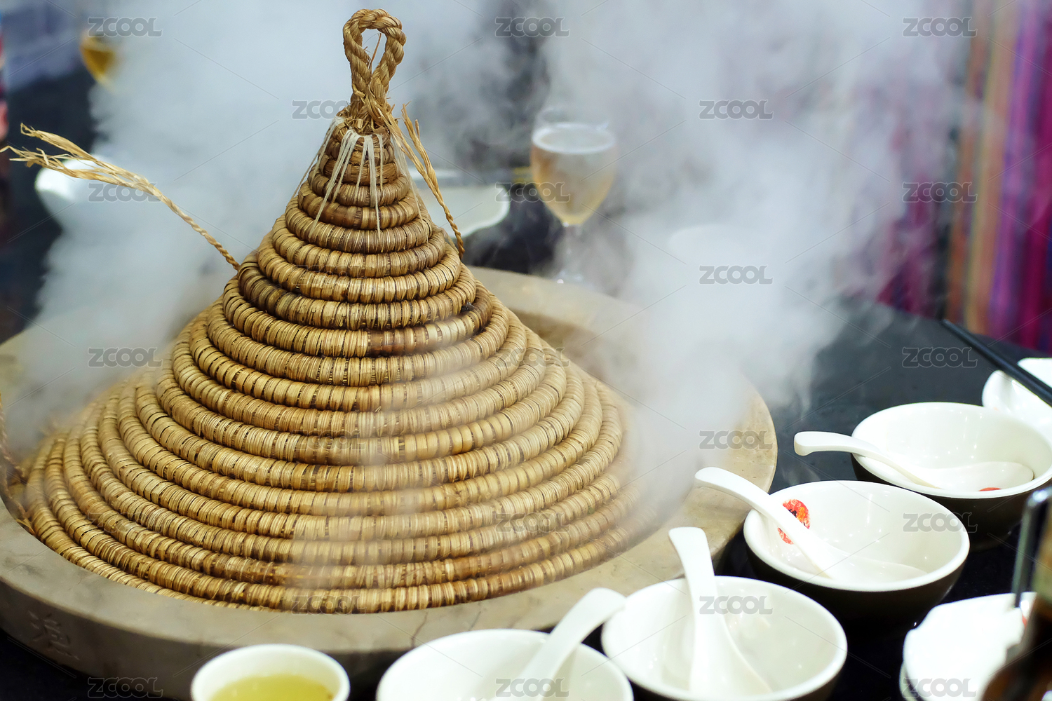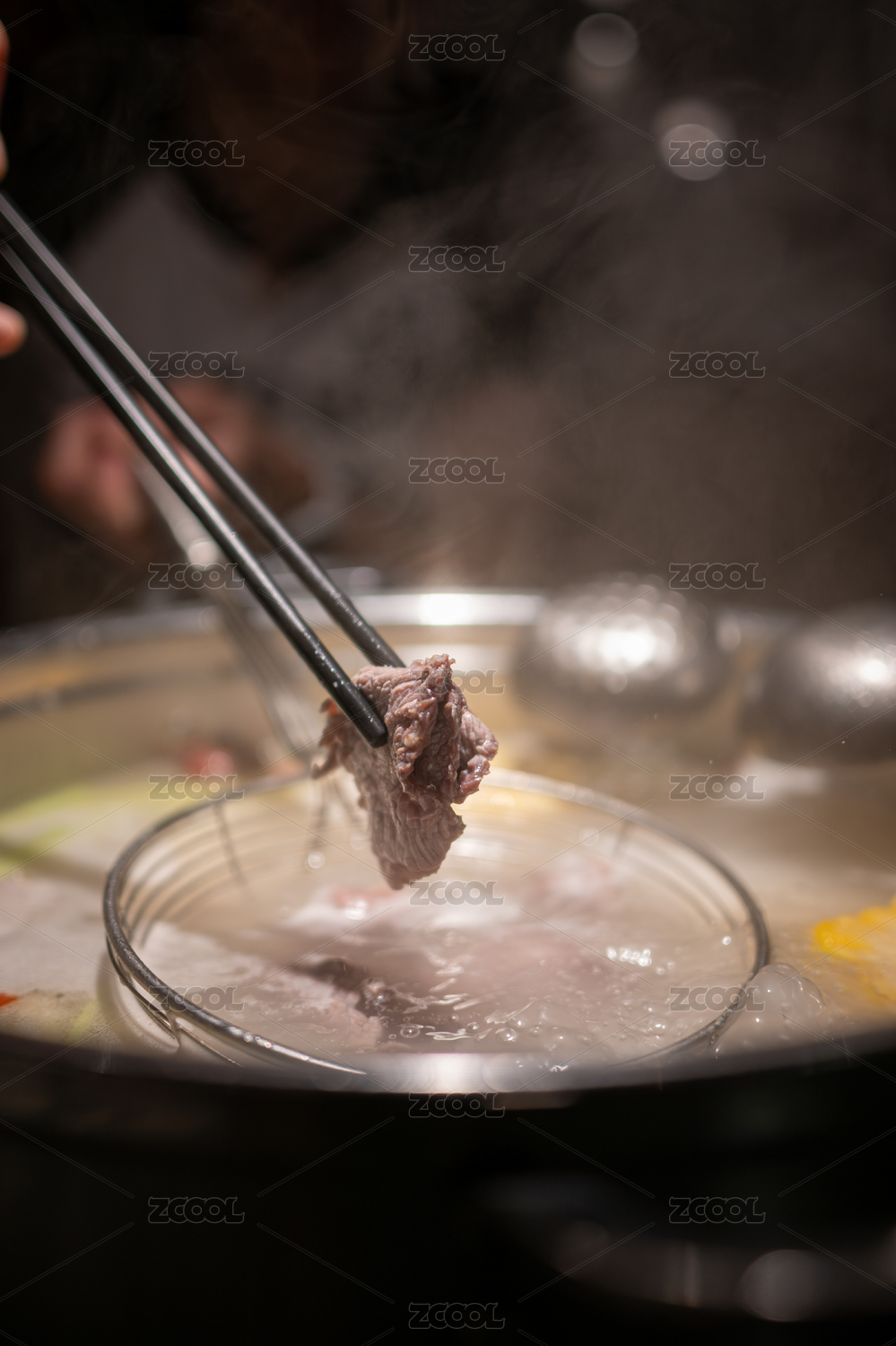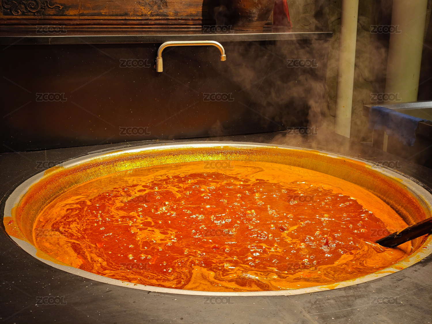 火鍋下菜特寫(xiě)與燒開(kāi)的火鍋底料