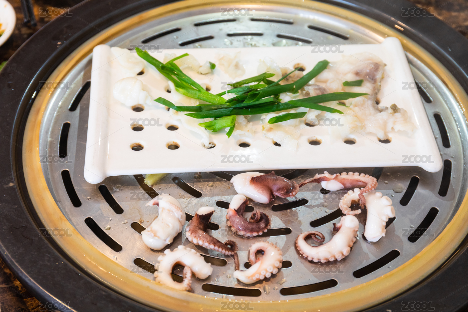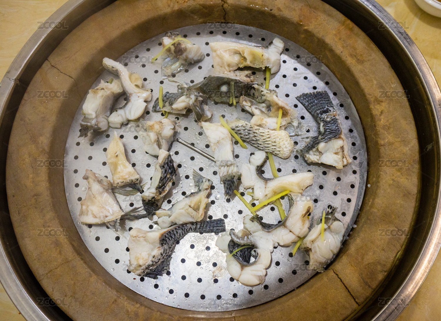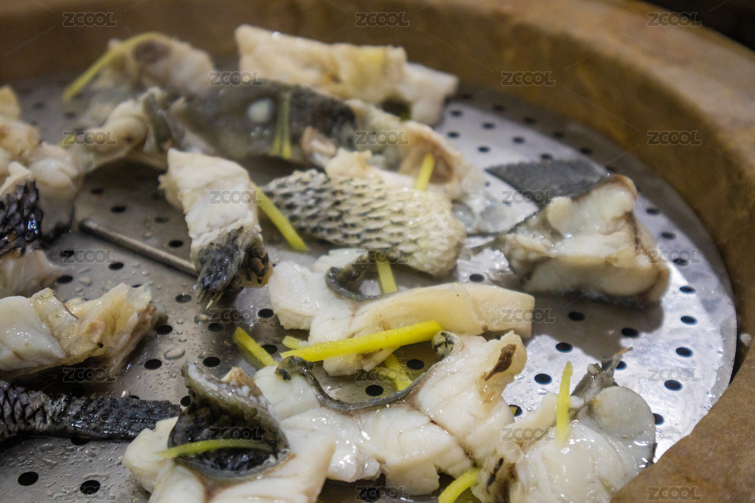 餐桌上蒸汽海鮮火鍋剛剛燙熟的新鮮花斑魚(yú)魚(yú)