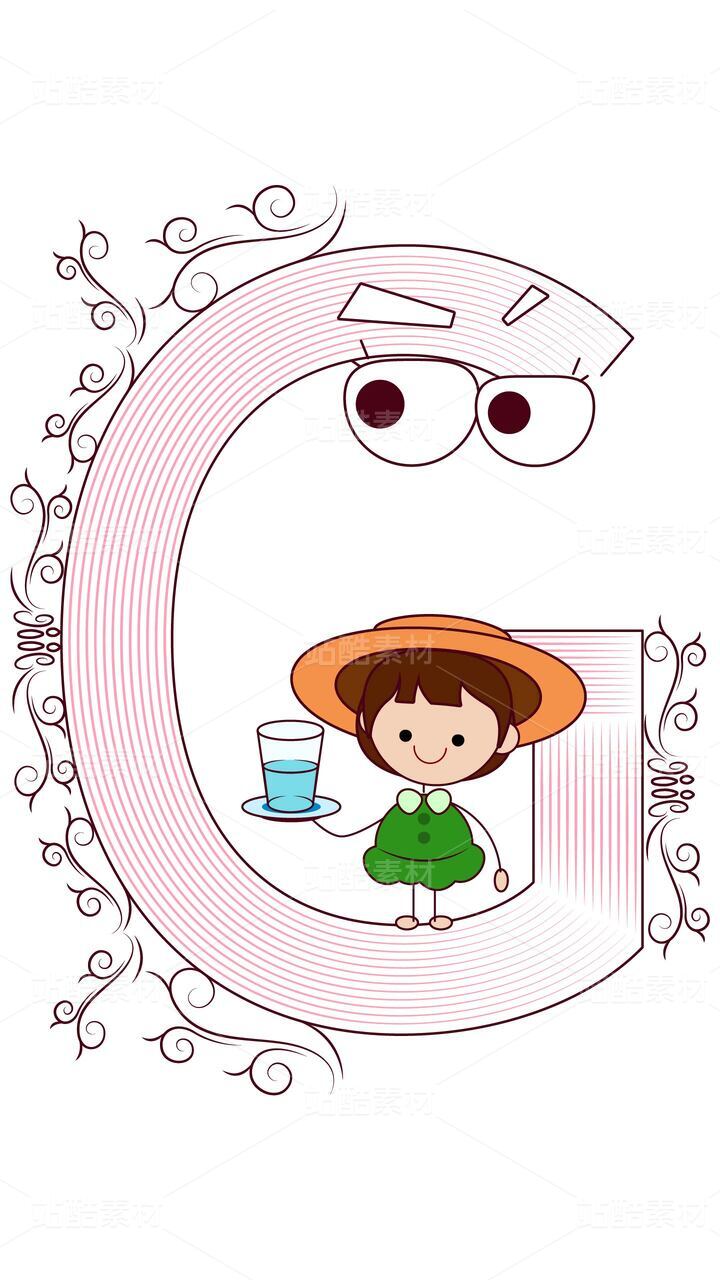 字母 G 的童趣時(shí)光:女孩與水杯的啟蒙插畫