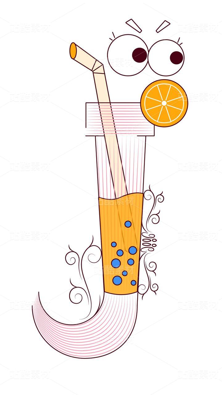字母 J 的清爽夏日:果汁與橙子的啟蒙插畫