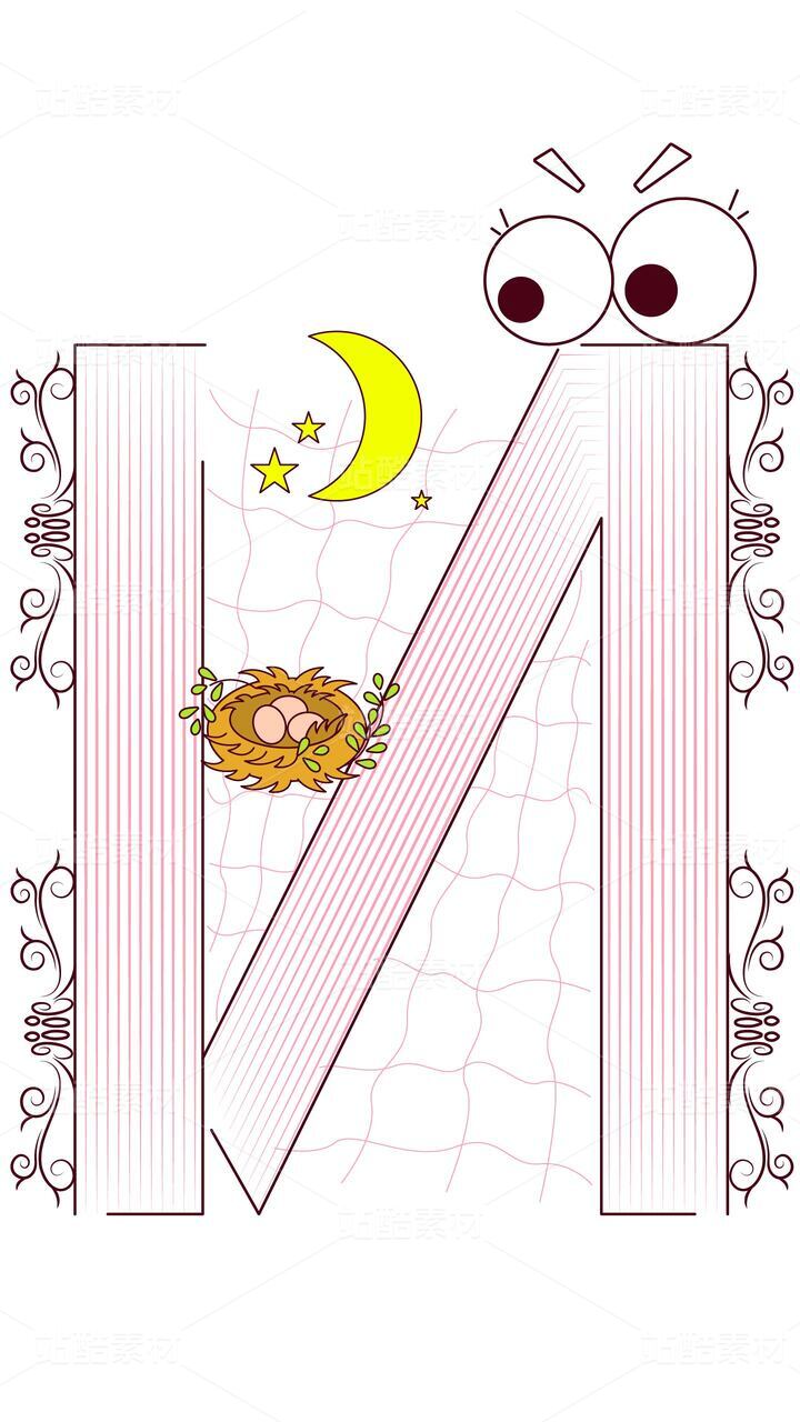 字母 N 的寧?kù)o夜晚:鳥巢與月亮的啟蒙插畫