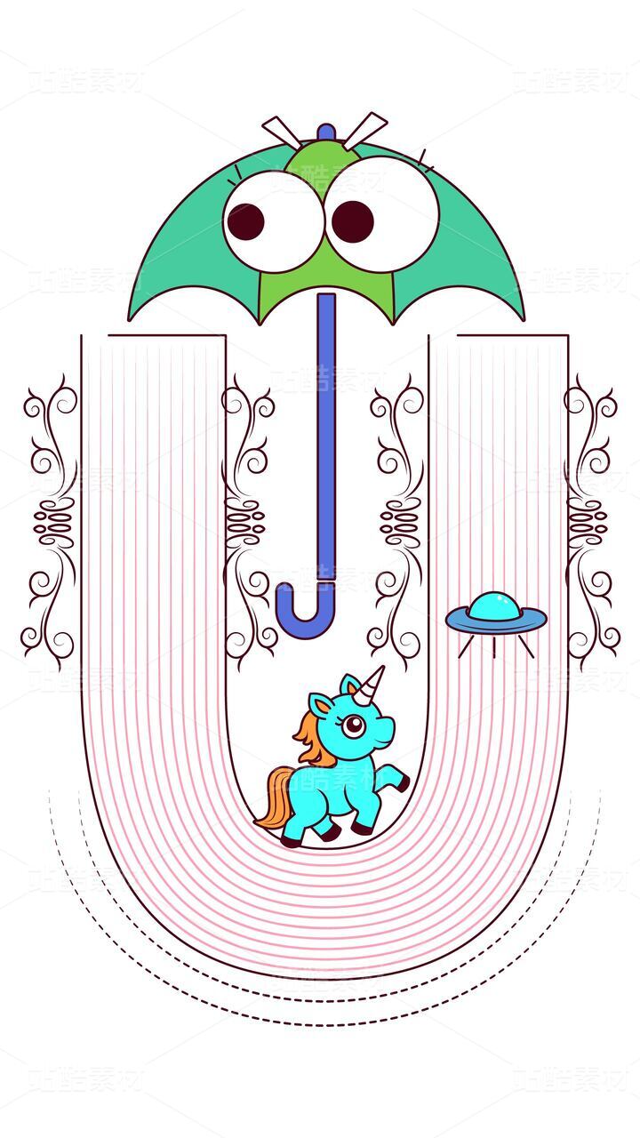 字母 U 的奇幻世界:雨傘與獨(dú)角獸啟蒙插畫