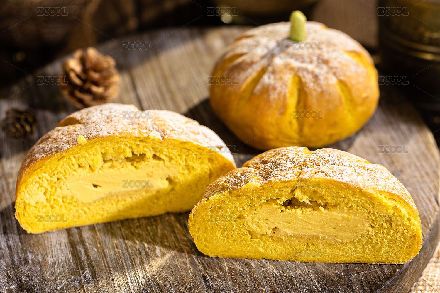 木板上的南瓜軟歐包