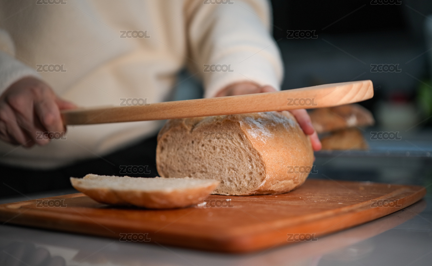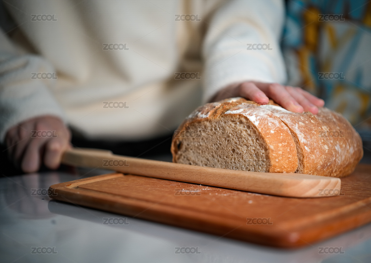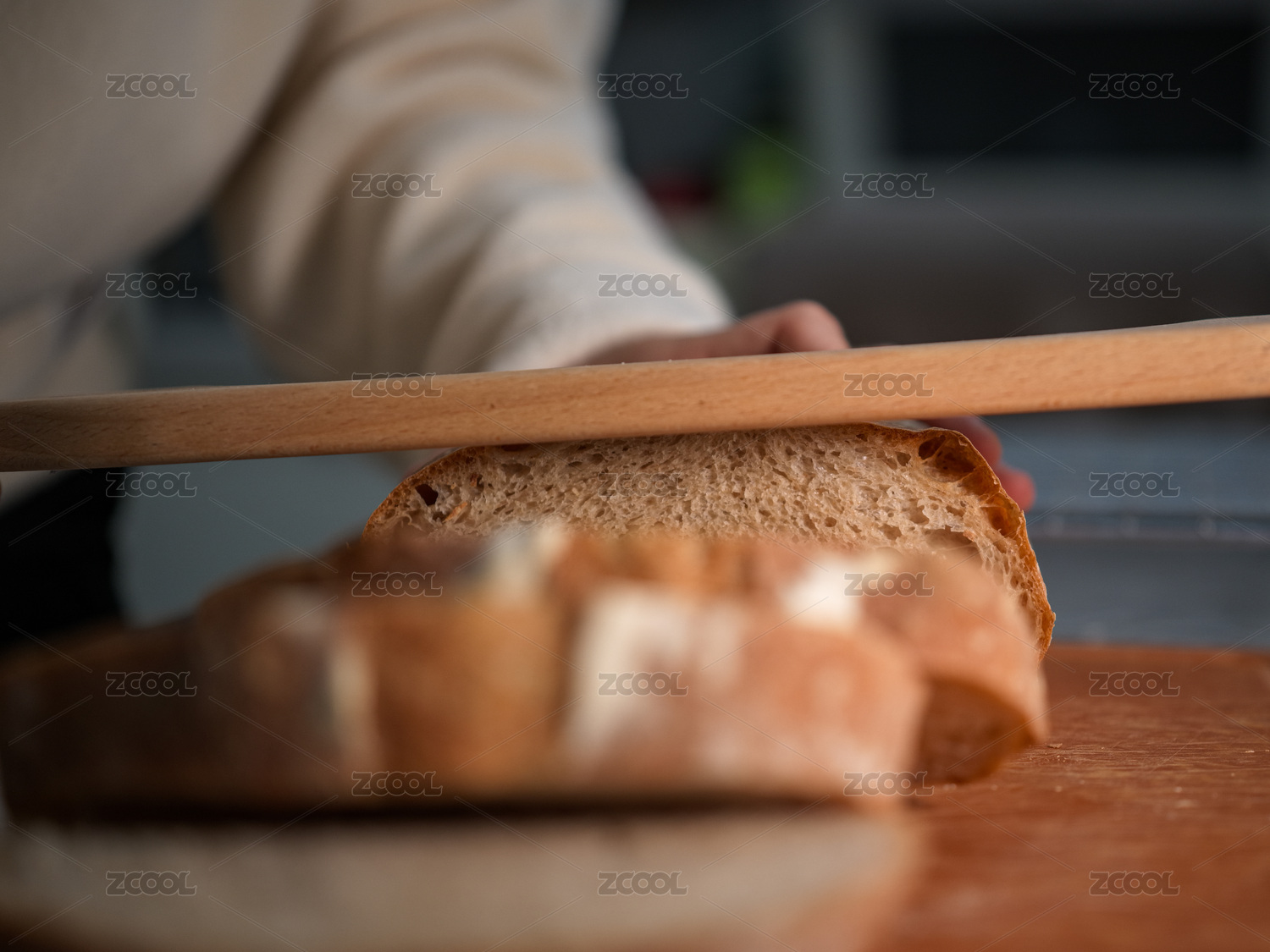 手觸面包切面包場景