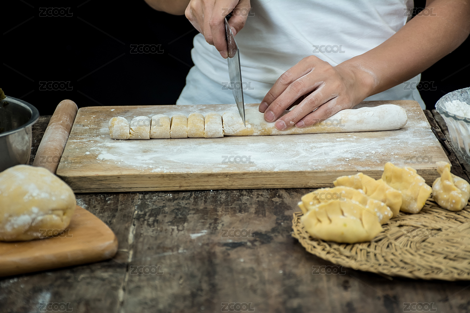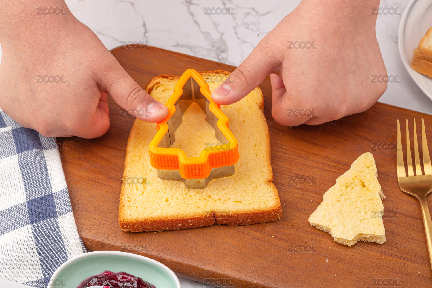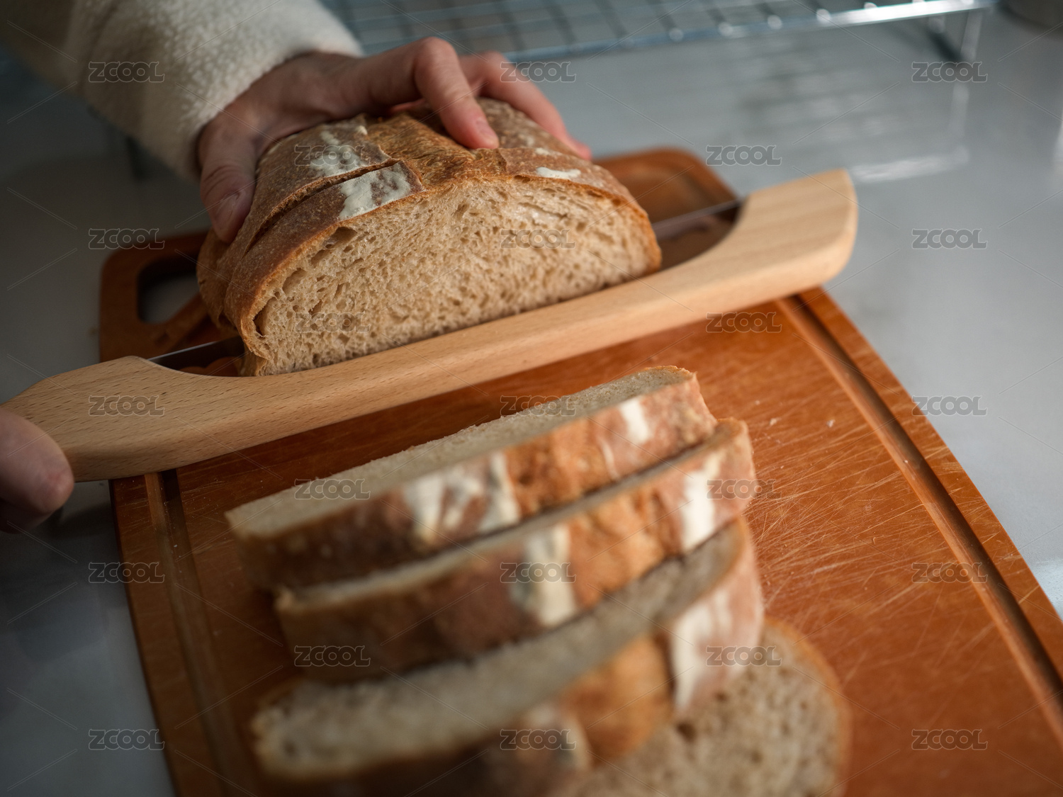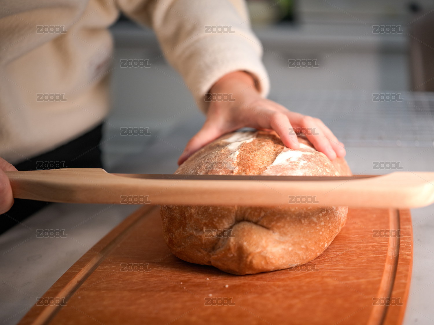 手觸面包切面包場景