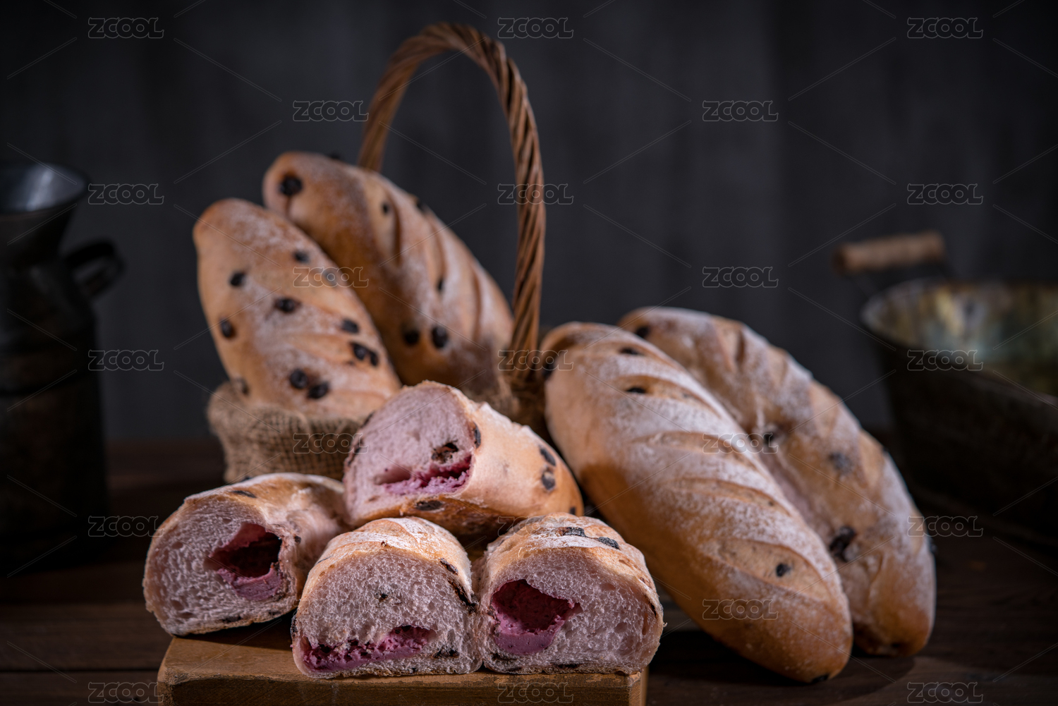 暗調法式軟面包及面包剖面