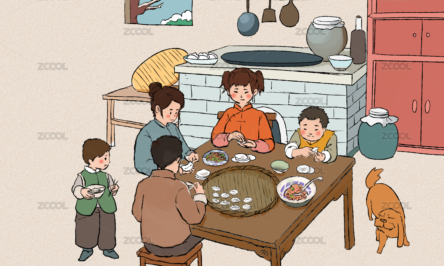 中國傳統(tǒng)習(xí)俗吃餃子插畫