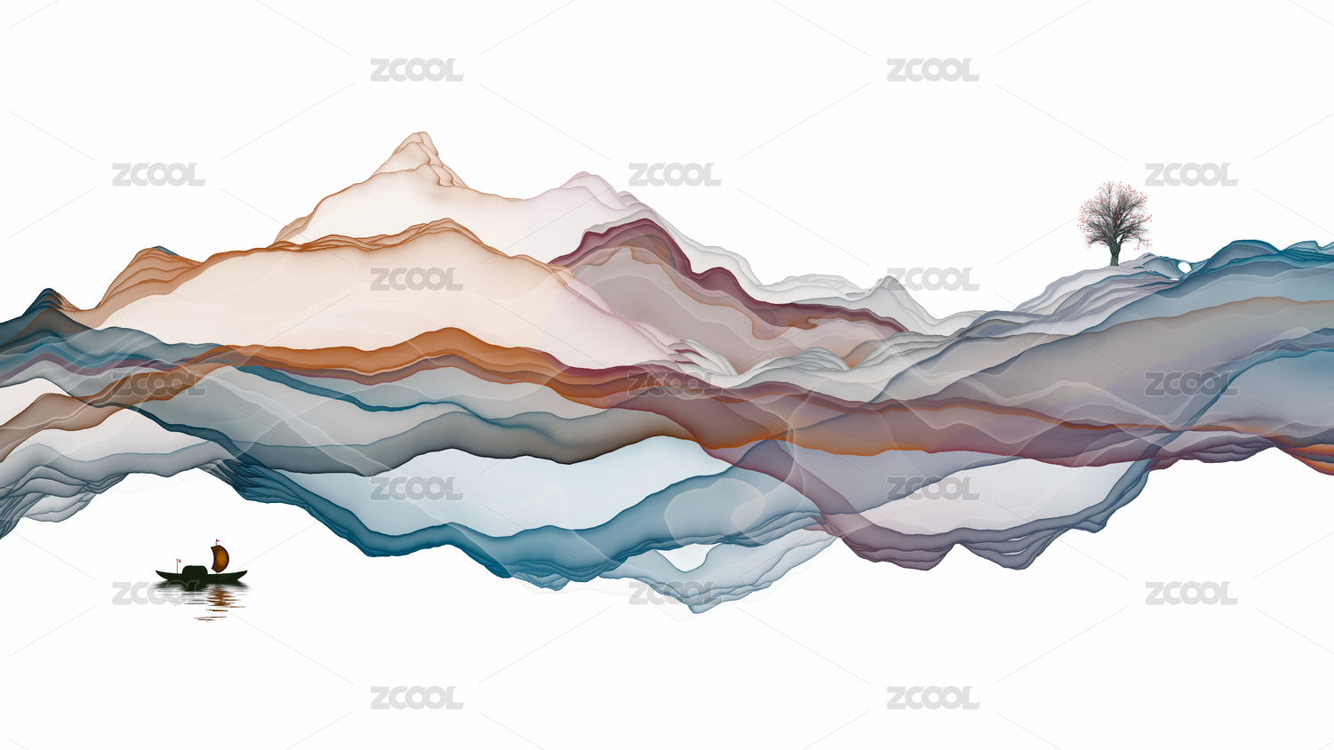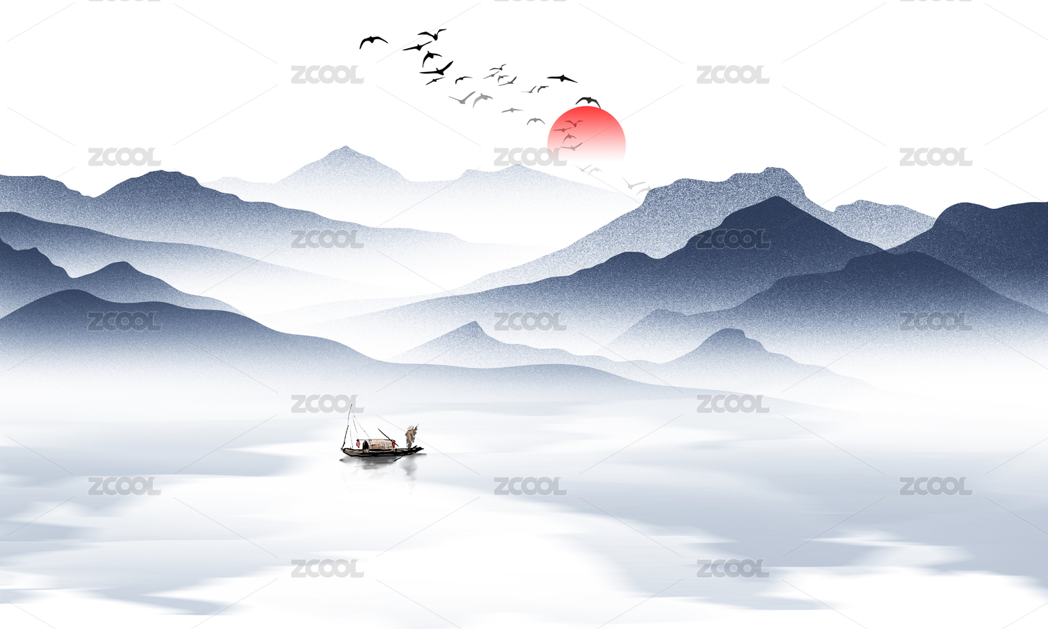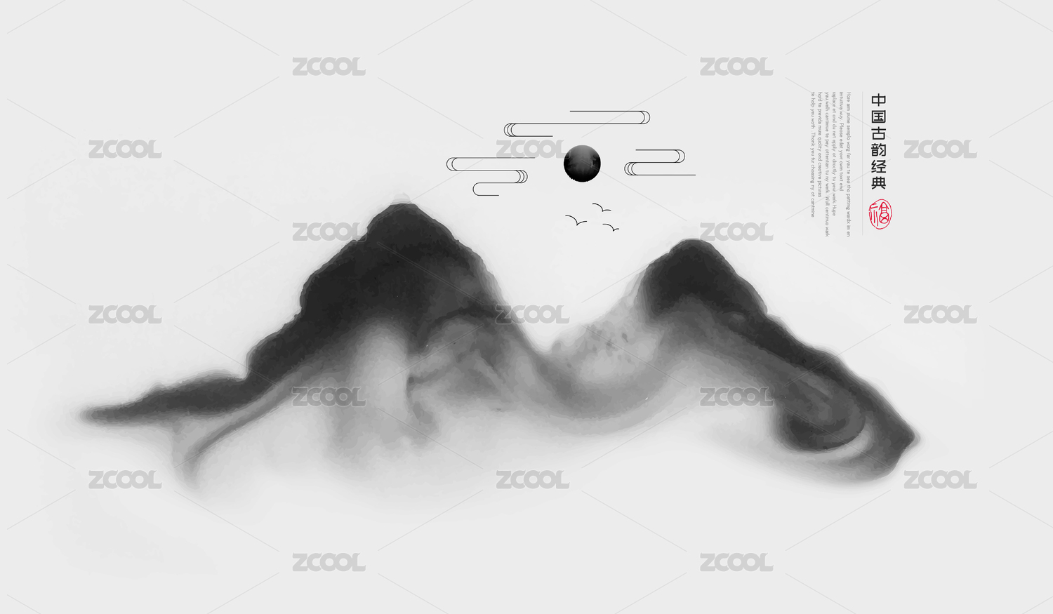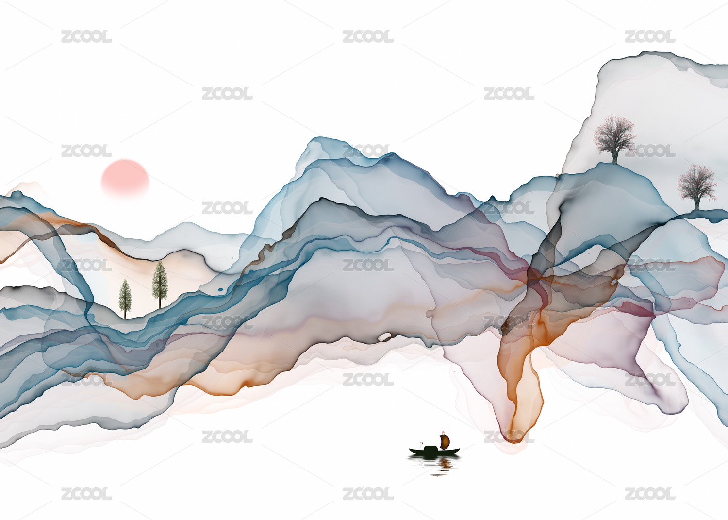 矢量新中式水墨山水畫