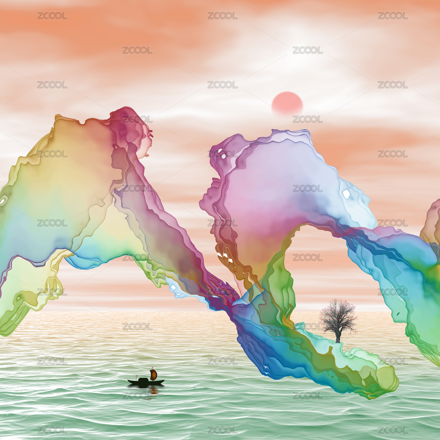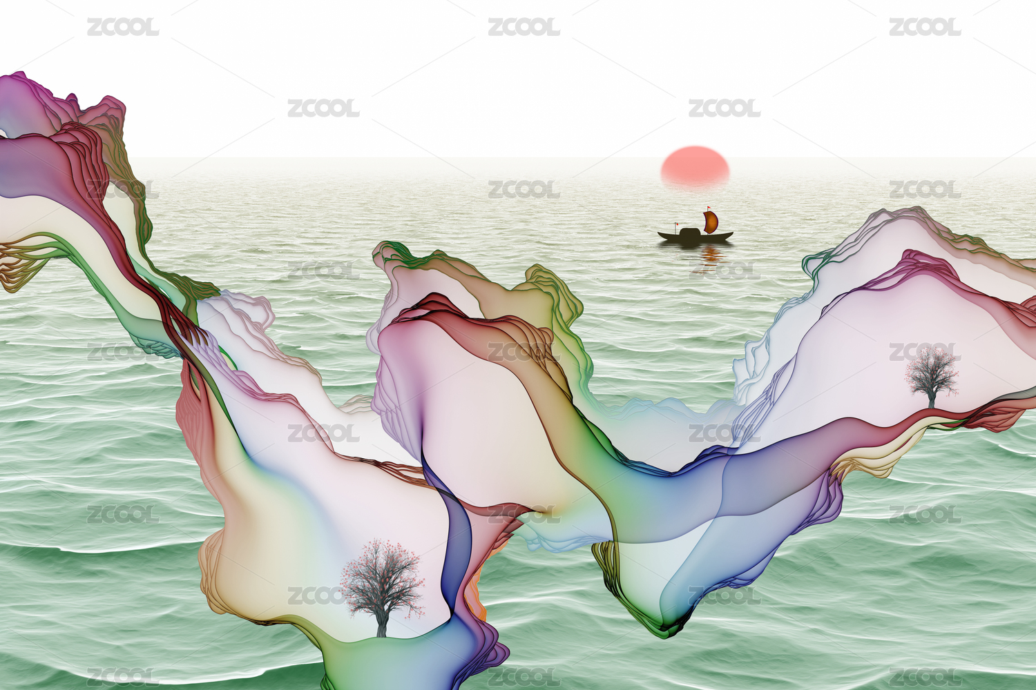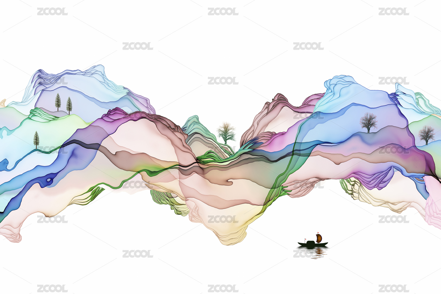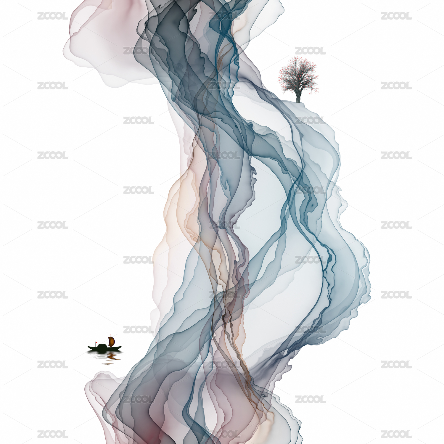 矢量新中式水墨山水畫