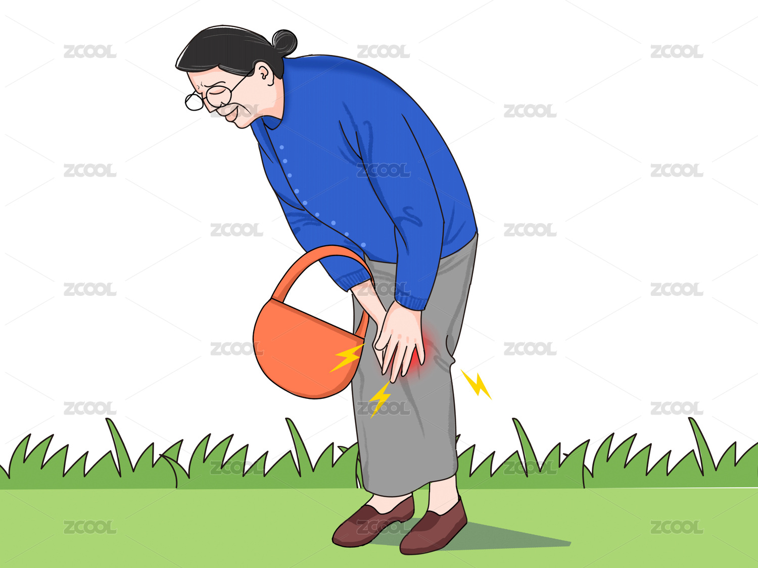 藍(lán)色寫實風(fēng)女性骨質(zhì)疏松綠色草地元素