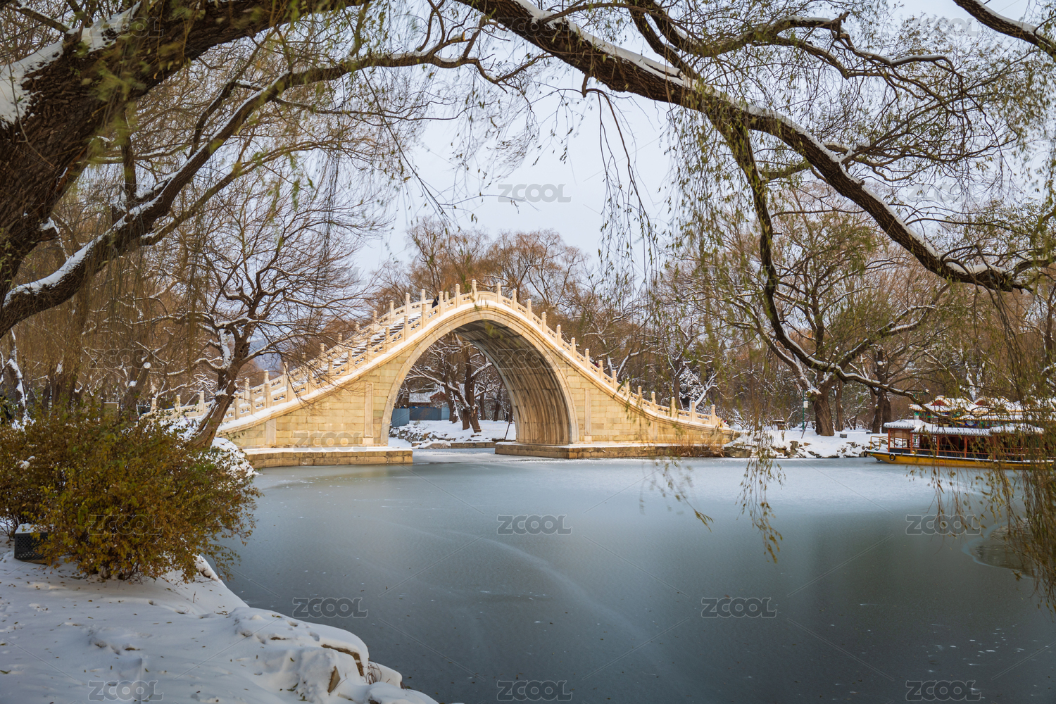 雪后的北京頤和園玉帶橋雪景