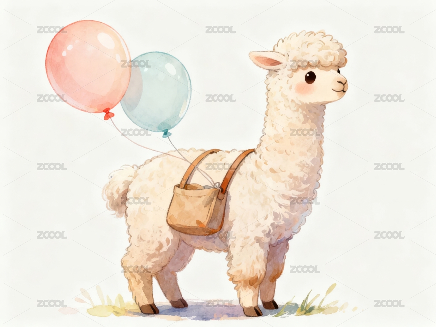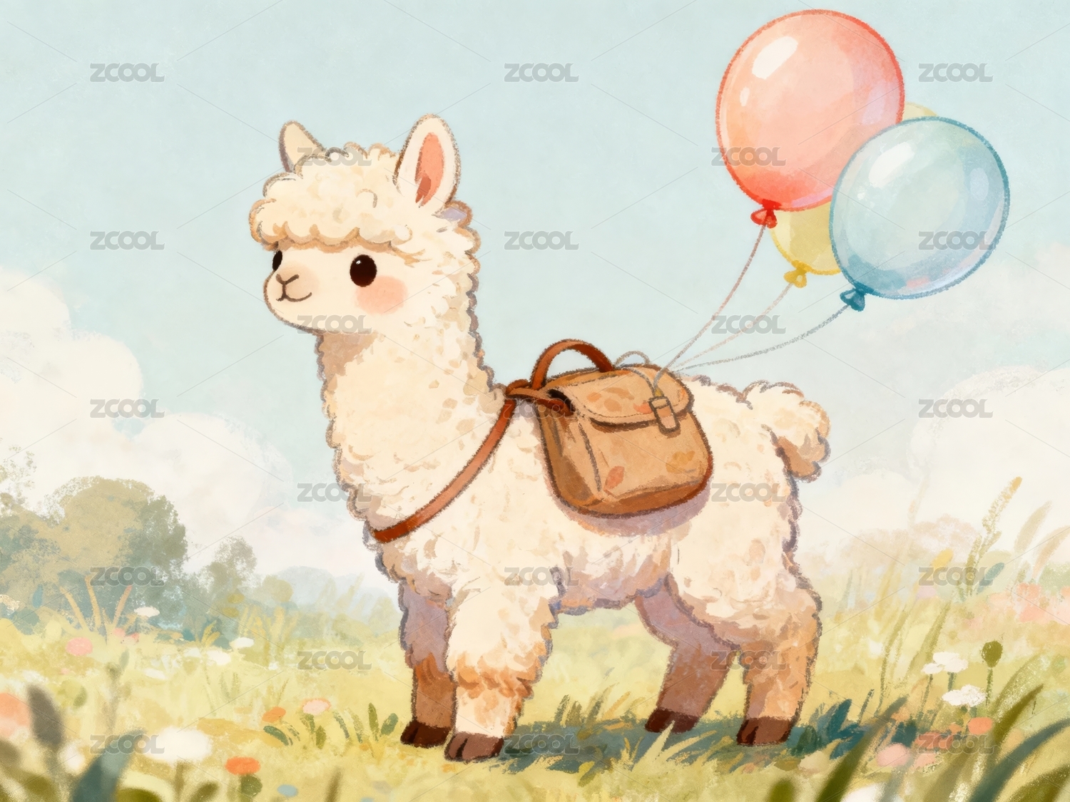 羊駝背著包牽著氣球
