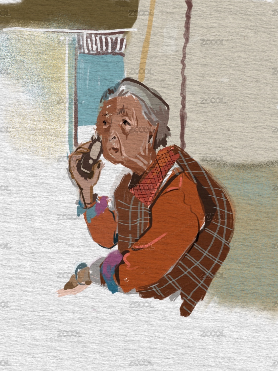 正在打電話的老奶奶