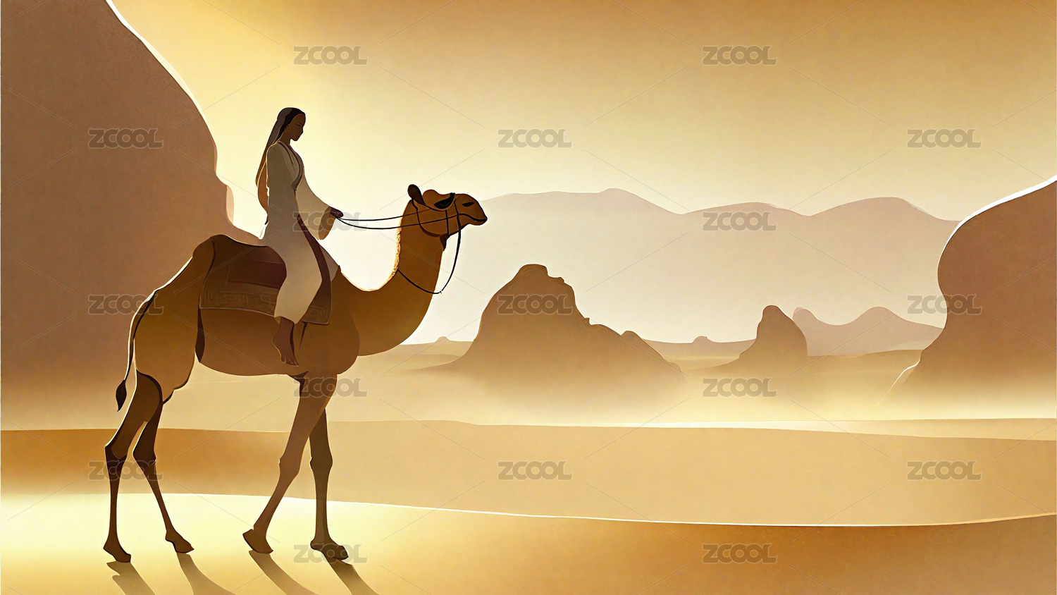 絲綢之路沙漠旅途駱駝背景