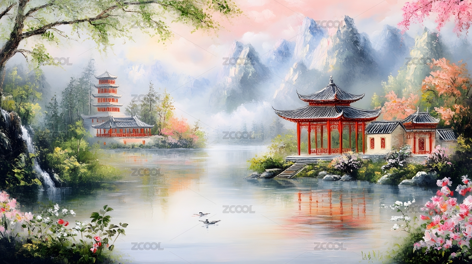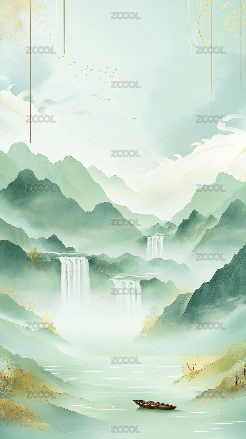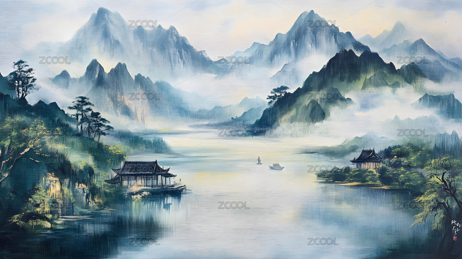 水墨江南山水畫 禪意山水畫 意境山水花鳥畫水墨花鳥畫