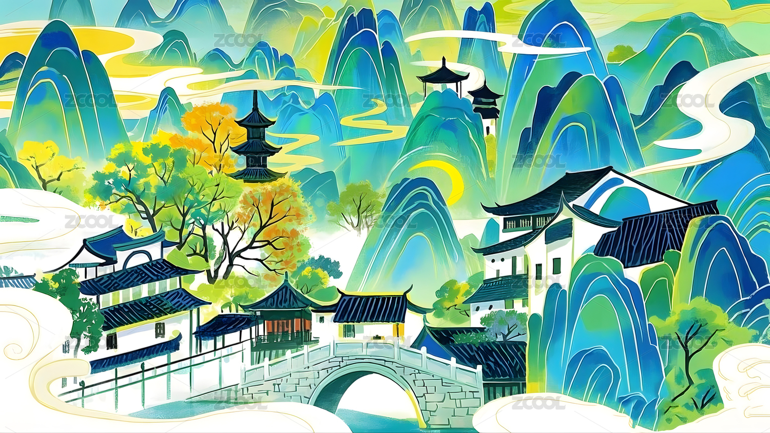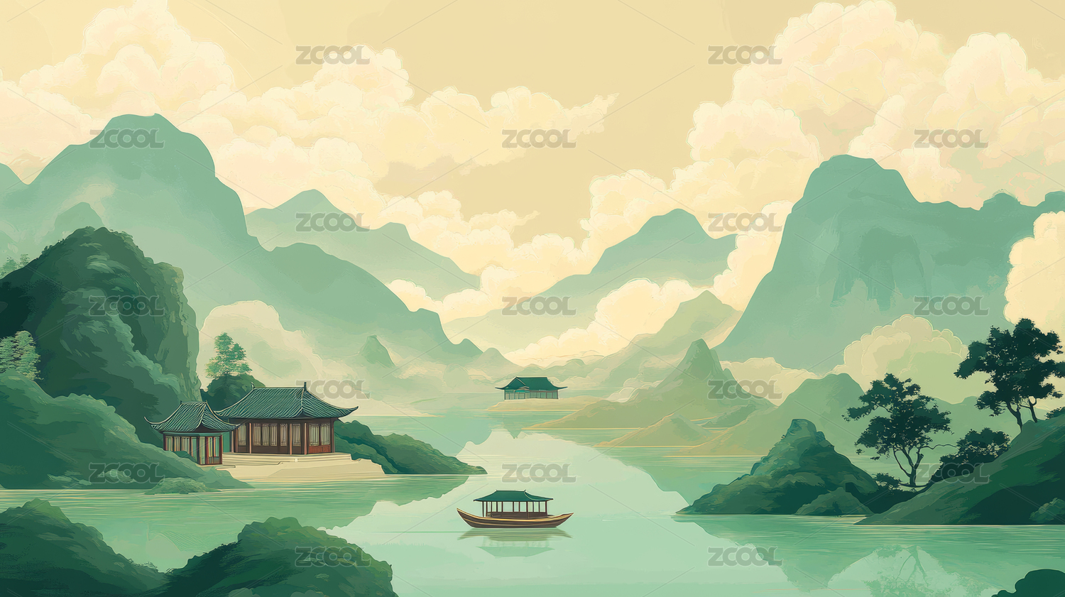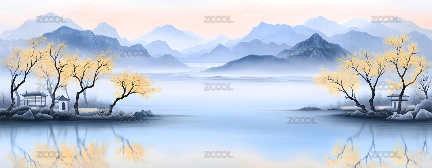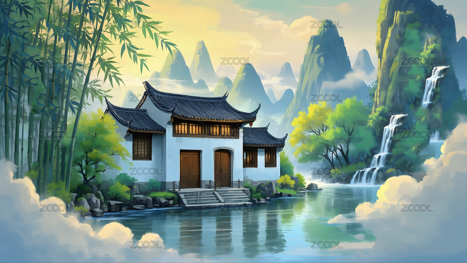 水墨江南山水畫 禪意山水畫 意境山水花鳥畫水墨花鳥畫