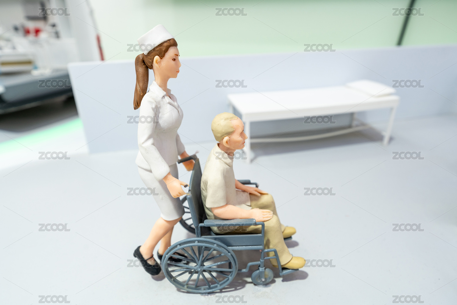 護(hù)士推著患者微縮模型