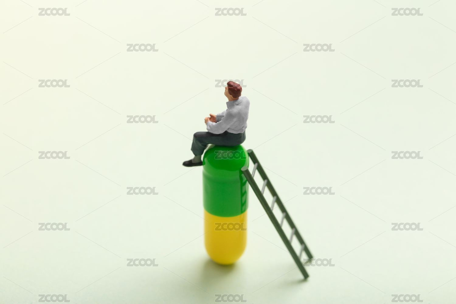 微縮創(chuàng)意坐在膠囊上思考的男性