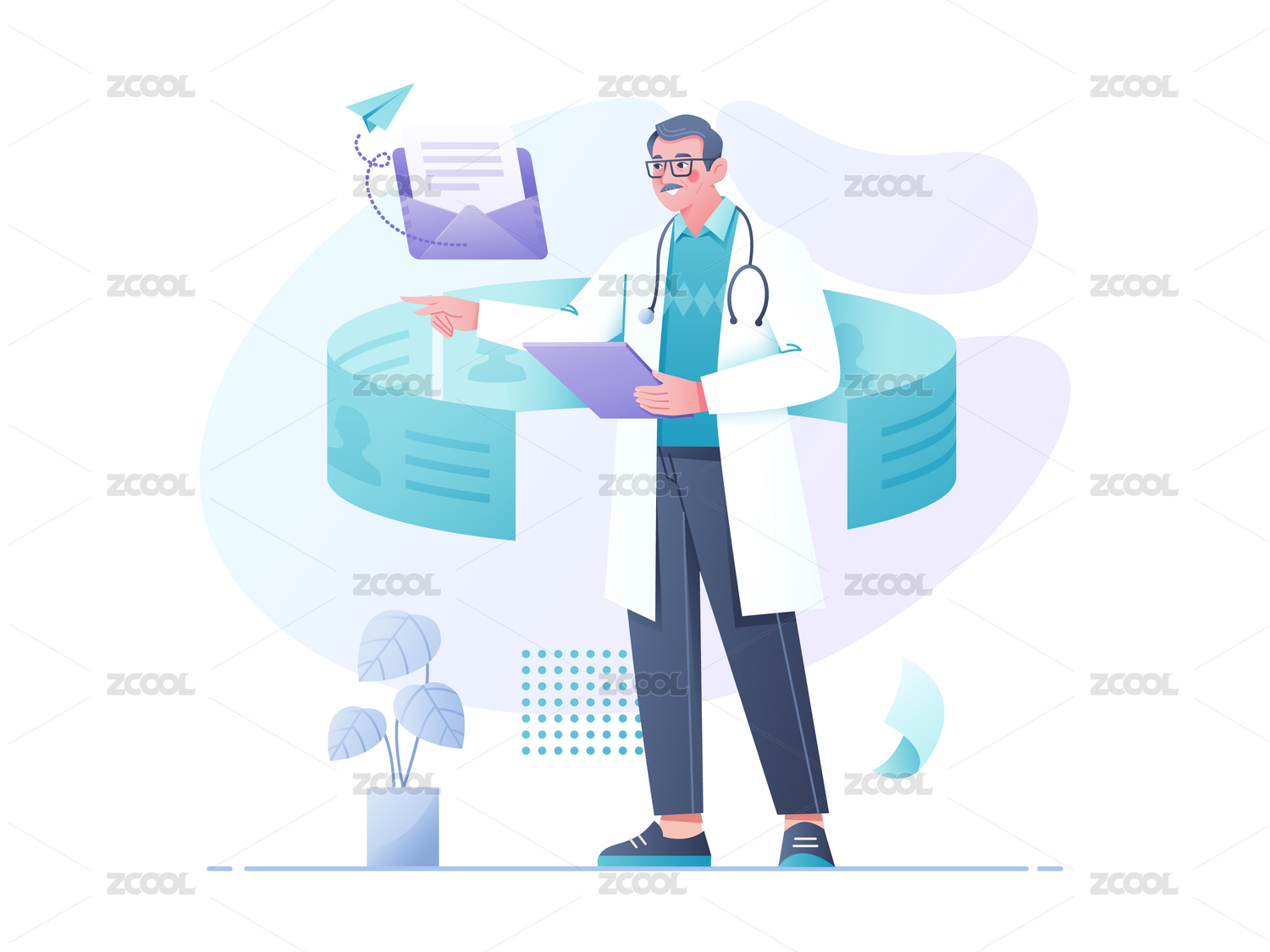 醫(yī)生智能跟蹤整理患者檔案病例醫(yī)療矢量插畫