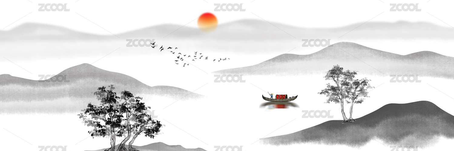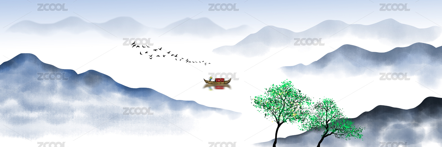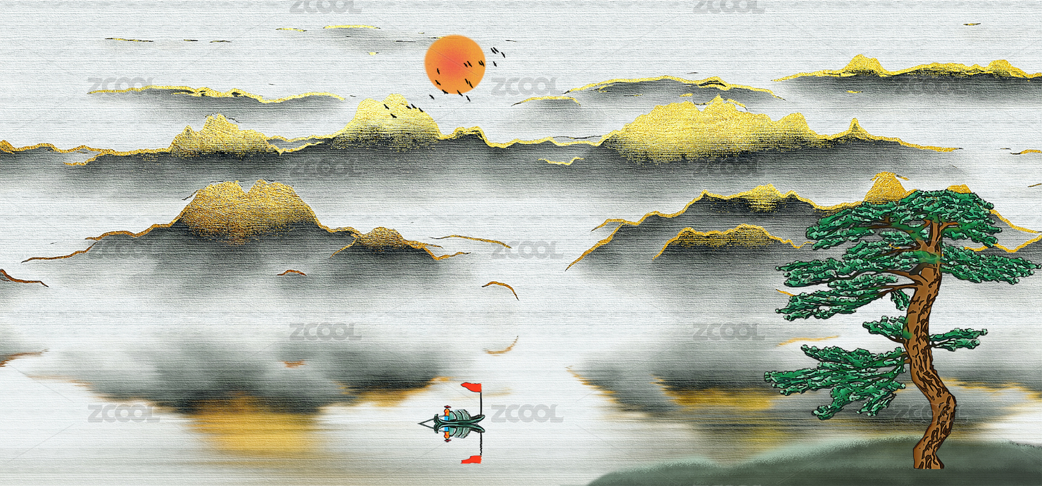 水墨山水裝飾畫抽象的彩色藝術(shù)線條背景