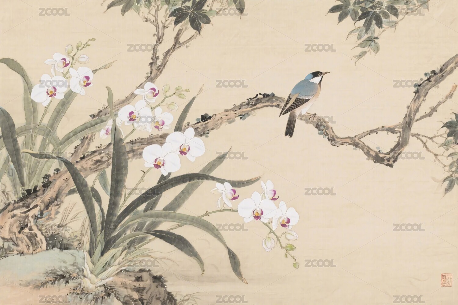 中國風(fēng)淡雅新中式花開富貴花鳥山水畫