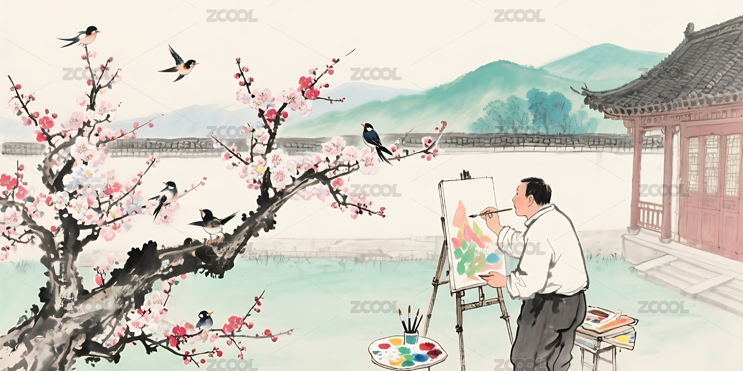 水墨藝術(shù)人物互動(dòng)場(chǎng)景插畫(huà)裝飾畫(huà)設(shè)計(jì)素材