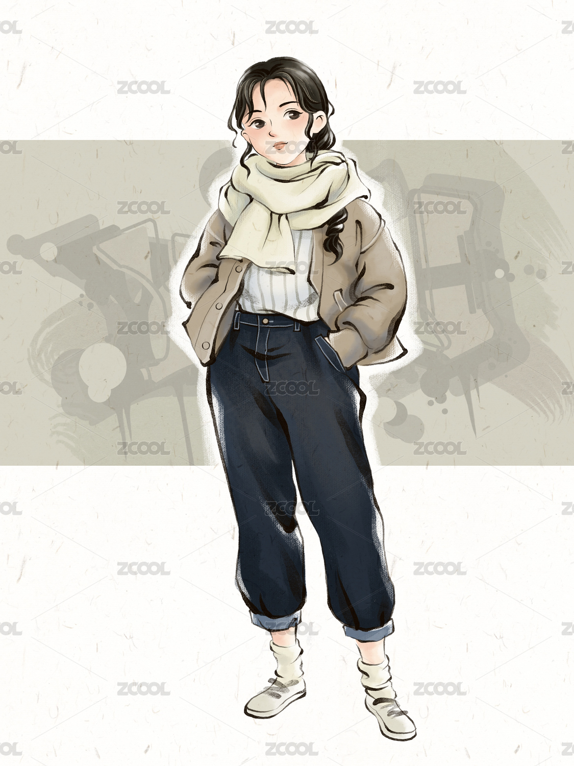 灰色日系漫畫風(fēng)街頭美少女