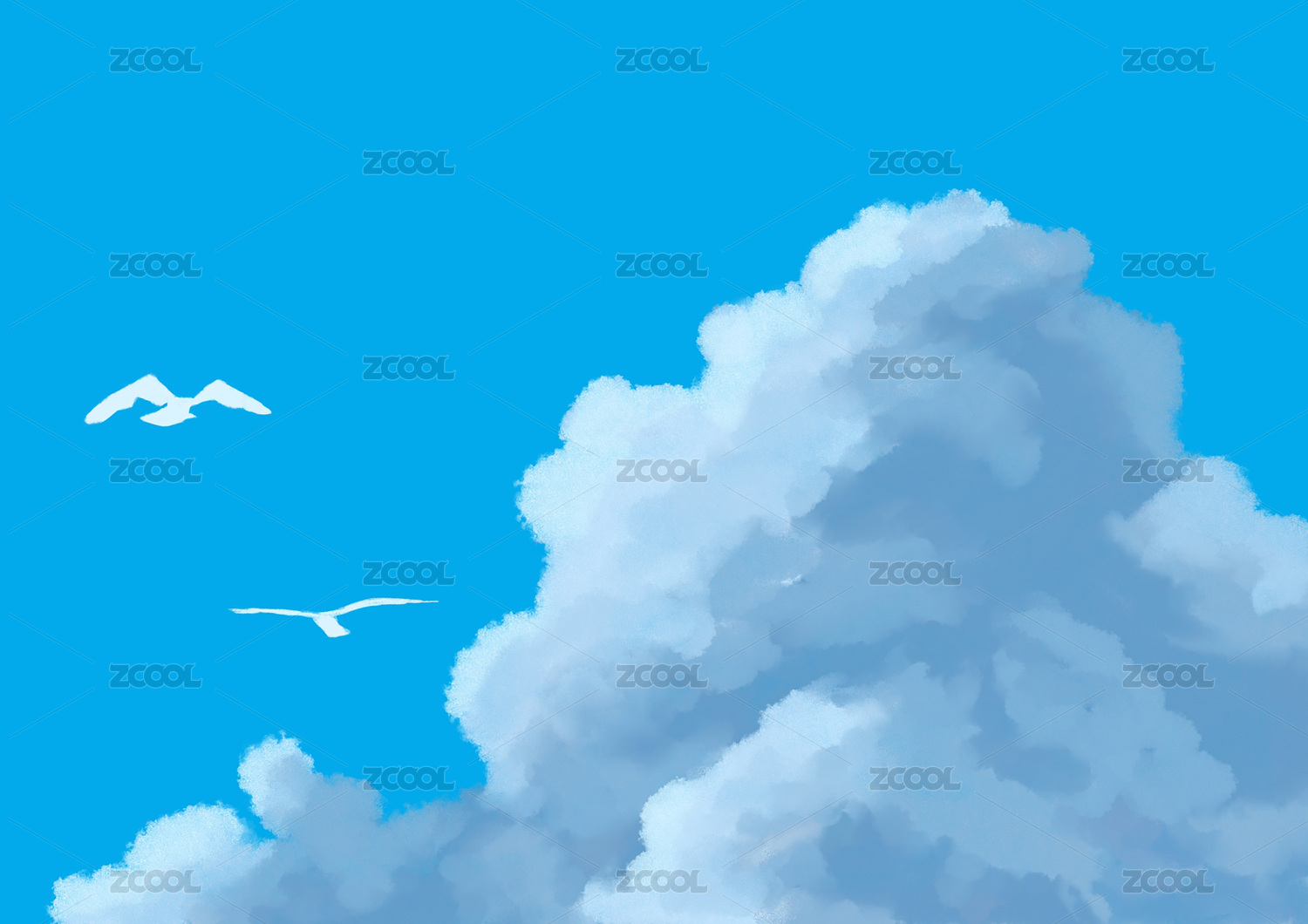 藍(lán)天白云水面卡通動(dòng)漫插畫