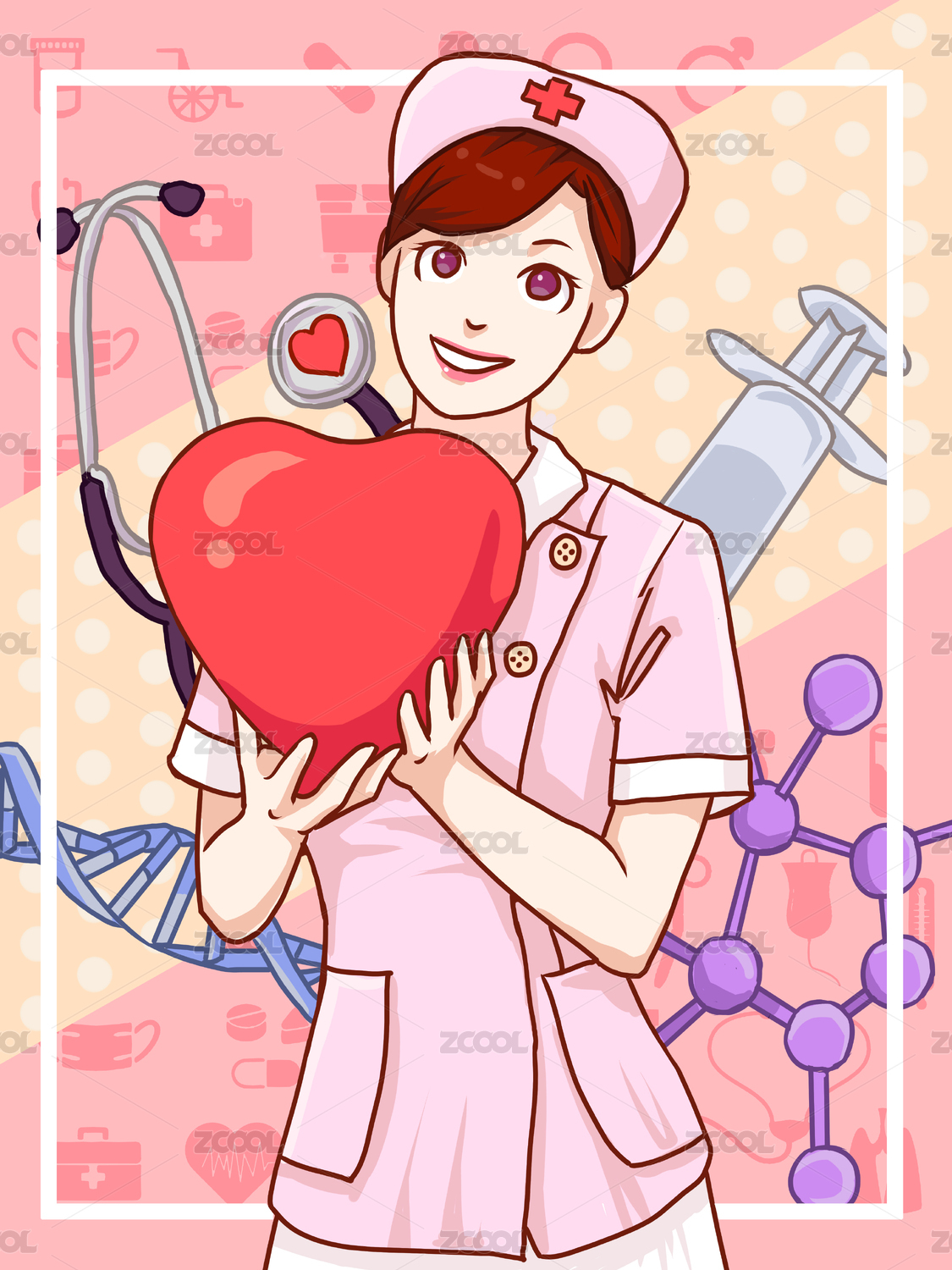 醫(yī)療粉色可愛護(hù)士送愛心插畫