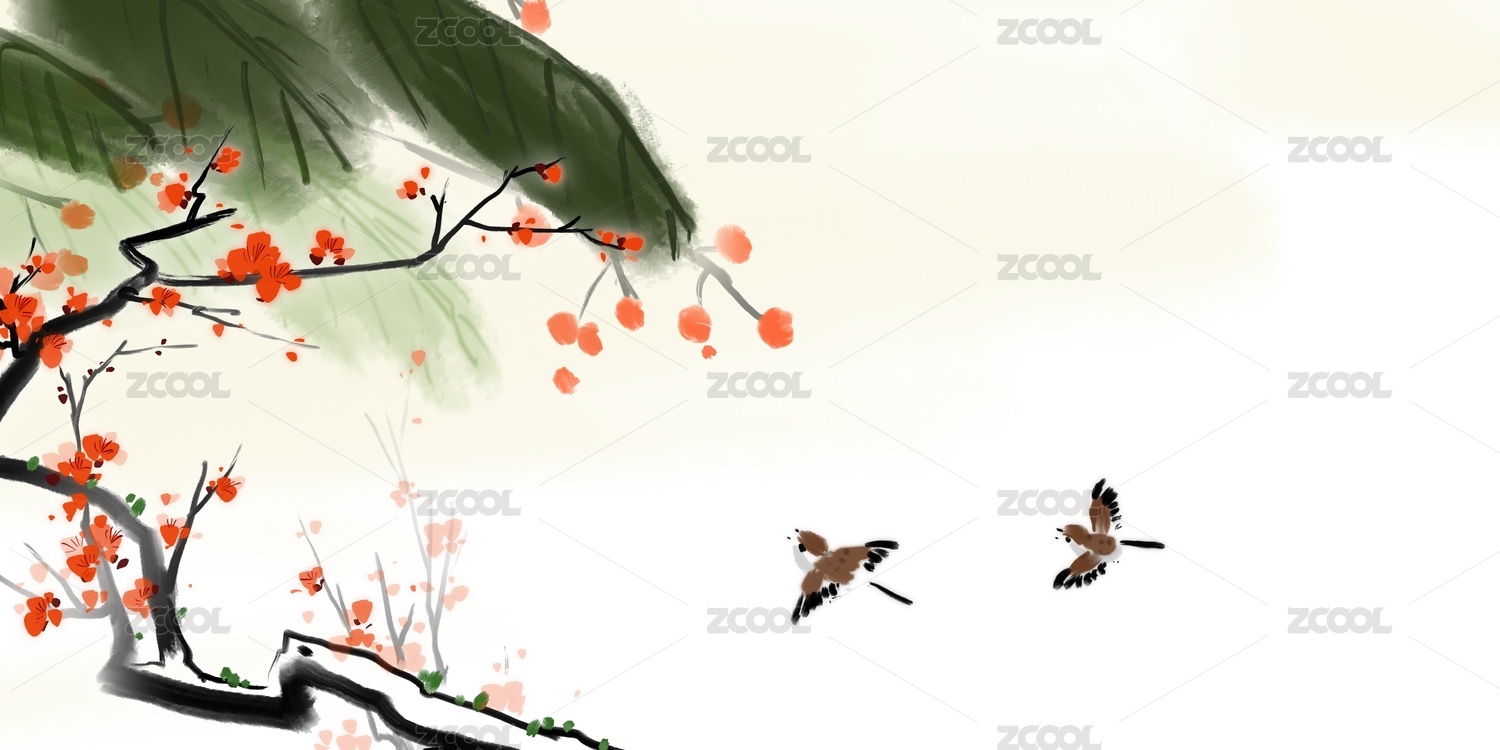 梅花飛舞水墨畫(huà)山水畫(huà)背景墻