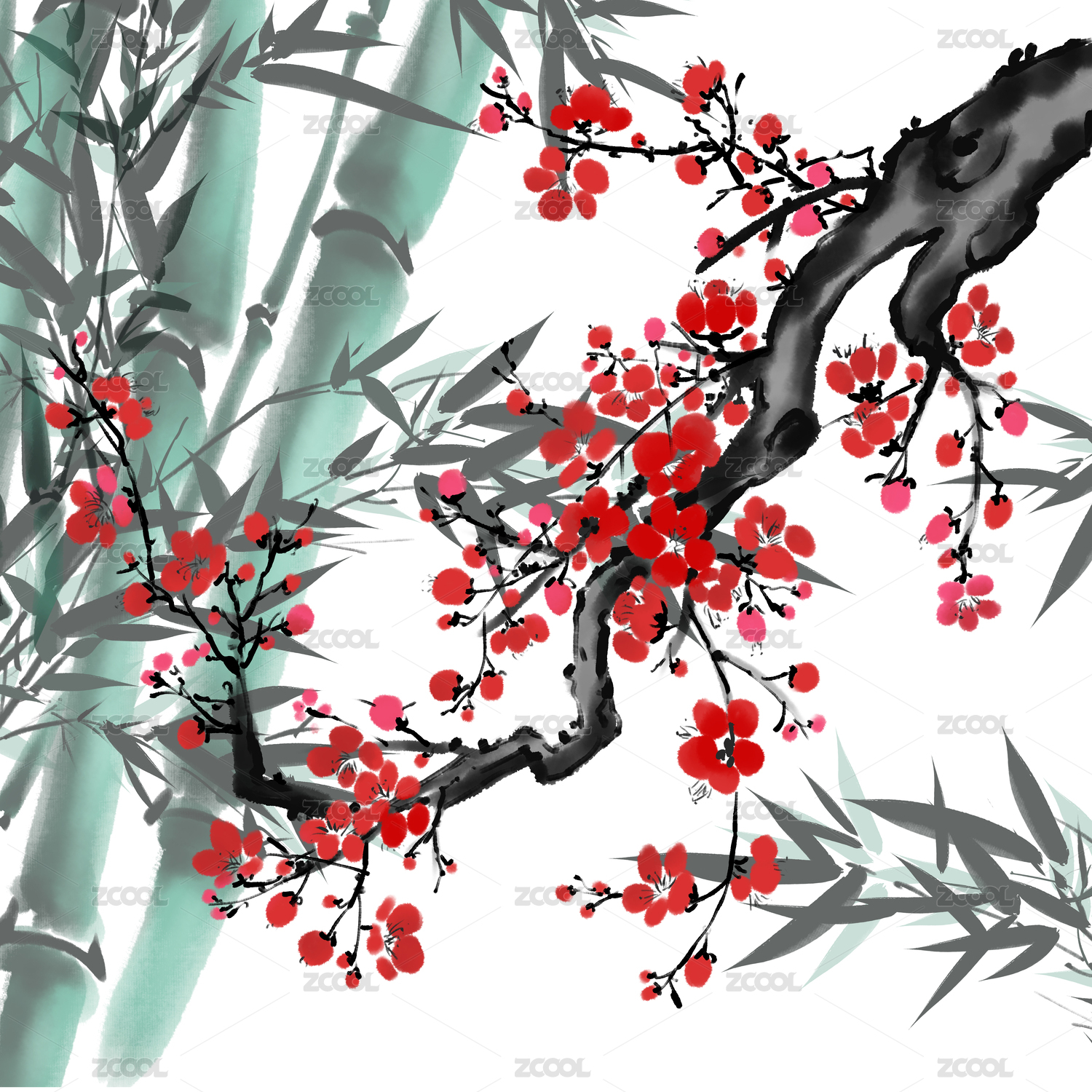 國(guó)畫(huà)竹子梅花水墨風(fēng)寫(xiě)意畫(huà)作